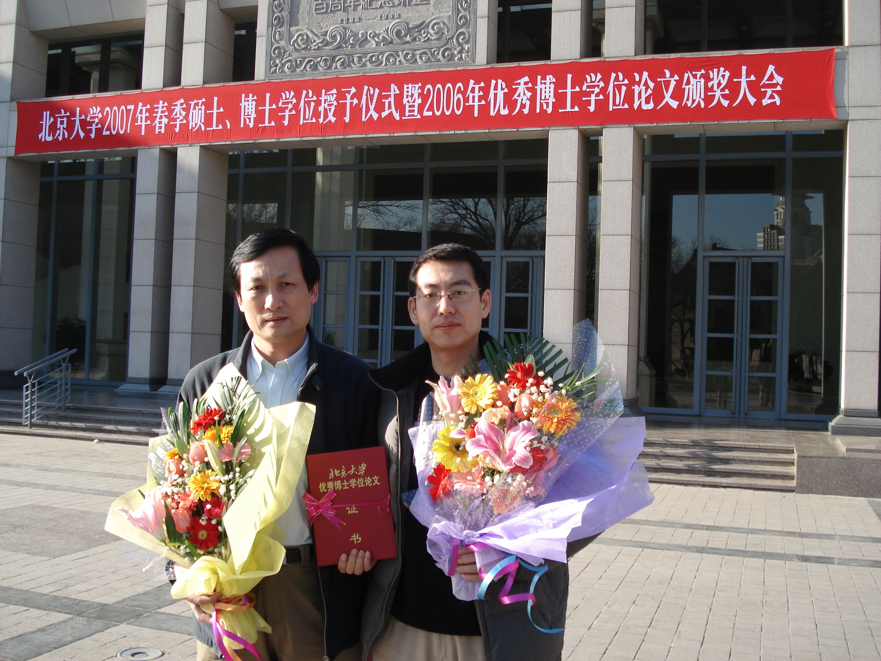 2007年1月12日下午,北京大学优秀博士学位论文颁奖典礼在北大百年讲堂隆重举行。我院骨科刘忠军主任的学生---博士研究生白金柱的论文《核素显像活体示踪脊髓内移植干细胞》获北京大学优秀博士论文二等奖。