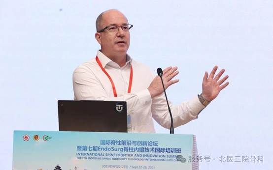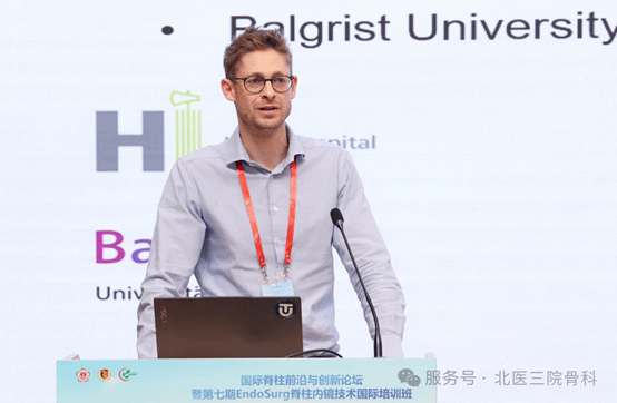 德国Andreas Kramer教授深耕感染性脊柱疾病领域,其《pyogene spondylodiscitis reseearch》报告结合大量临床数据,解析了病因机制与新型诊疗方案,引发全场深度思考;Nicolai Maldaner教授的《Digital objectives outcomes measure in spine surgery》,展示了人工智能、大数据等技术在手术疗效评价中的创新应用,为精准医疗发展提供了新路径。青岛大学附属医院马学晓教授阐述《EndoSurg理念下腰椎椎板间入路手术临床应用》,随后他进行了导航下EndoTLIF手术演示讲解,结合手术案例详解技术适应症与操作技巧,彰显了EndoSurg技术体系的成熟性与可拓展性。