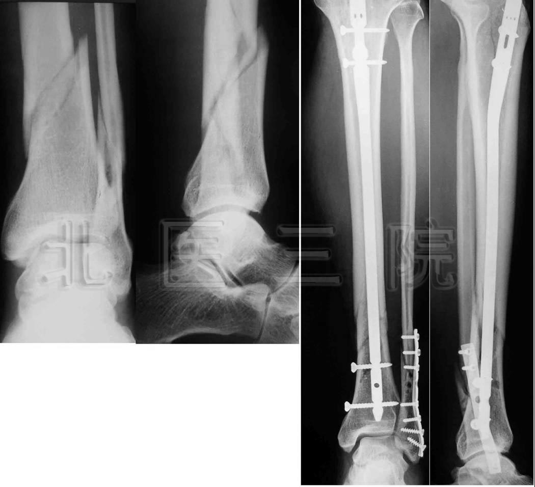 7.男,49岁,胫腓骨骨折,径胫骨髓内钉固定+腓骨钢板固定