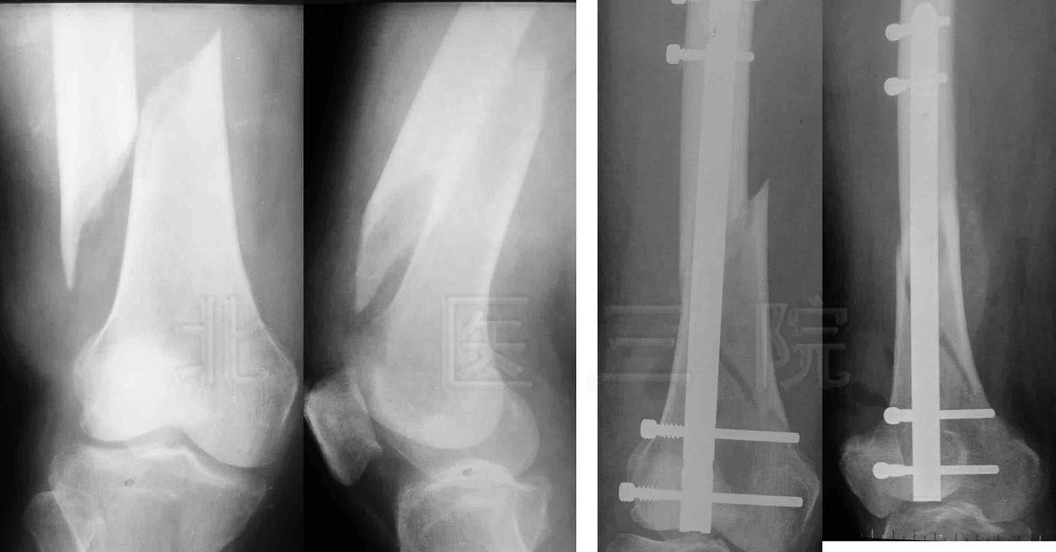 5.女,66岁,外伤致股骨下端骨折,行股骨逆行交锁髓内