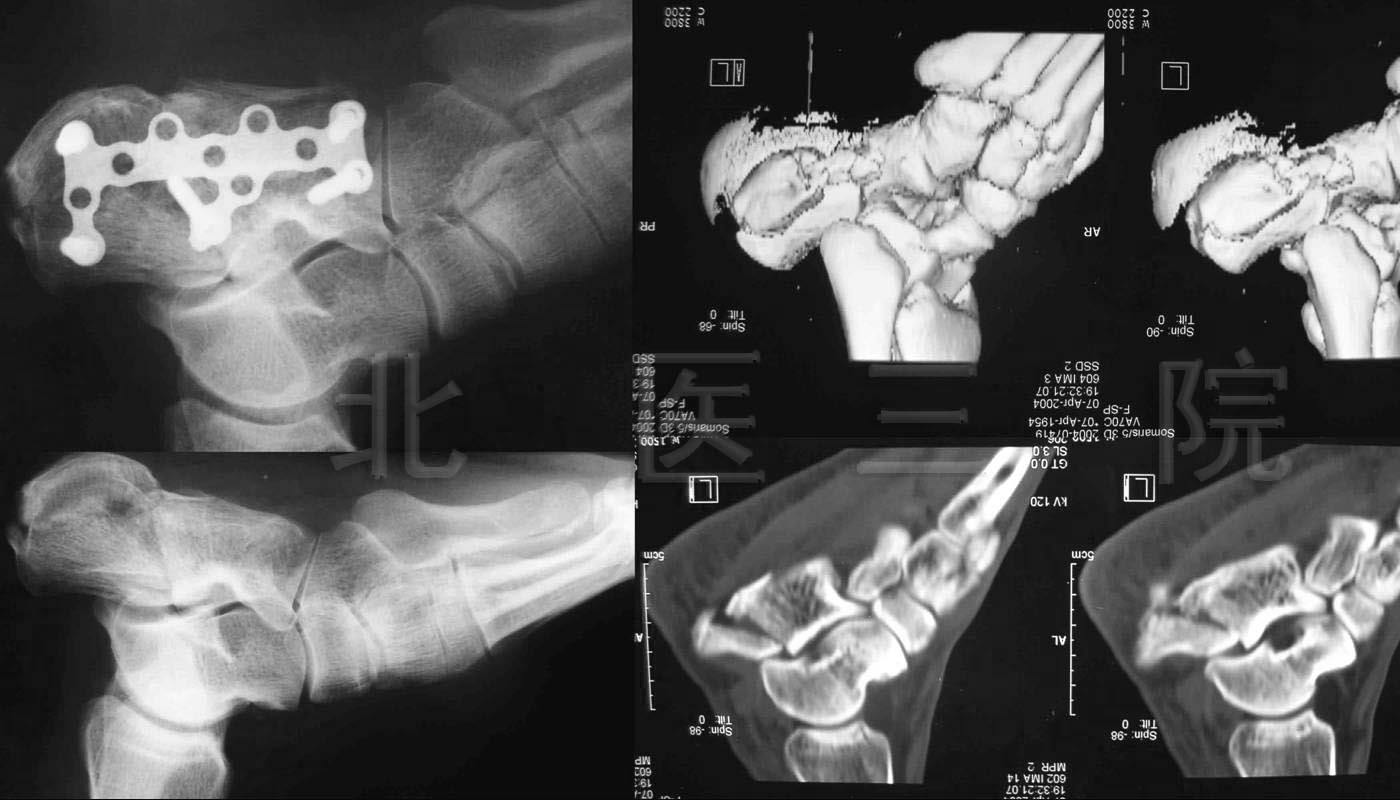 对断臂处进行植骨;最后,精细的螺丝钉将新骨与旧骨密切、牢固地结合起来。
