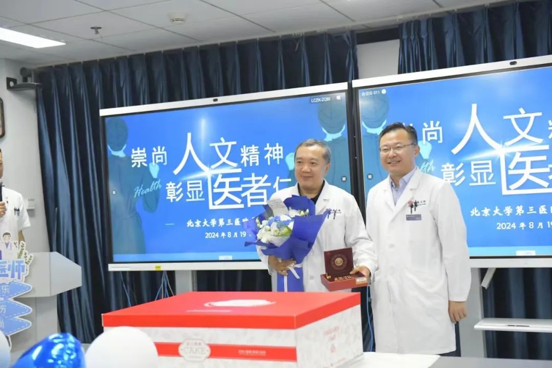 漫漫的行医之路,艰苦又幸福。随后李危石主任为从医30年的潘胜发教授颁发纪念奖章,并送上鲜花与真挚的祝福。潘胜发教授也发表了从医30年感言,对于自己而言行医之路已经历30年,改变的是容颜,但不变的是我们始终保持着的初心,既是我们面对疾病的敬畏,也是对每天接触患者的敬畏,更是对从事的医师职业的敬畏。30年汇聚成一句话,感谢每一位帮助我的老师和同事,我的青春无悔,谢谢大家。