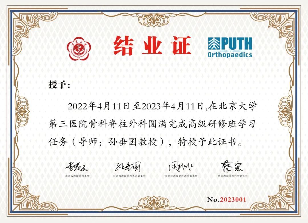 高级研修期间相关问题最终解释权以北京大学第三医院教育处及北京大学第三医院骨科核心组为准。