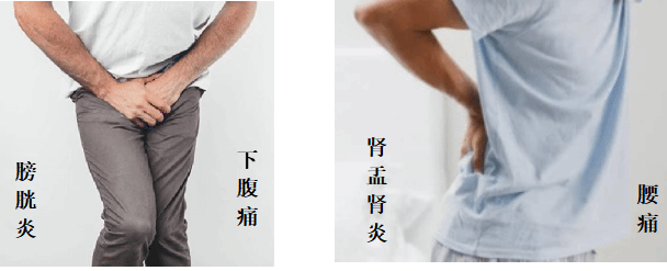 膀胱在下腹部耻骨上,急性膀胱炎的患者除了尿路刺激征,还会有中下腹部隐痛、坠痛等表现。如果细菌仅侵犯了尿道和膀胱这些“下尿路”,一般不发烧或仅有低热。但如果细菌继续上行到肾脏,就可能出现高热、畏寒、寒战等全身症状,因为肾脏在人的腰部两侧,上尿路的感染如急性肾盂肾炎时,还会表现为腰痛,尤其用手叩击时,疼痛加重,叫做“肾区叩痛”。