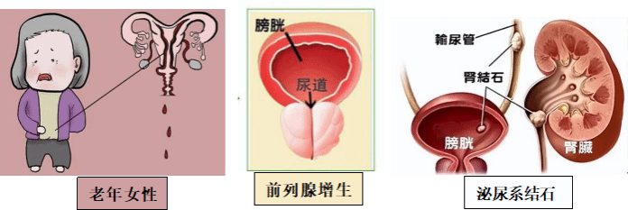 老年男性多有前列腺增生,导致尿道梗阻、尿液排出不畅、膀胱中残余尿增多,利于细菌停留和繁殖,也容易发生尿路感染。
