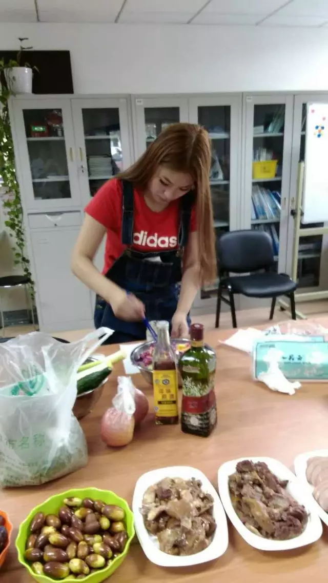 汲老师负责拌馅,这可是个技术活,馅的味道决定饺子的好吃程度,汲老师的手艺可真是一级棒的。其他姐妹呢,张宁全程负责煮饺子,欧姐负责拌凉菜,汲老师和晓光姐、晓鹏姐、杨姐、坤姐、还有其他姐妹负责包饺子。我呢,就是打打下手,切切葱,不过说实话,切葱的时候可真是“泪流满面”啊,幸好我有切葱必备神器——墨镜,瞬间感觉切葱啥的都是小事啦。