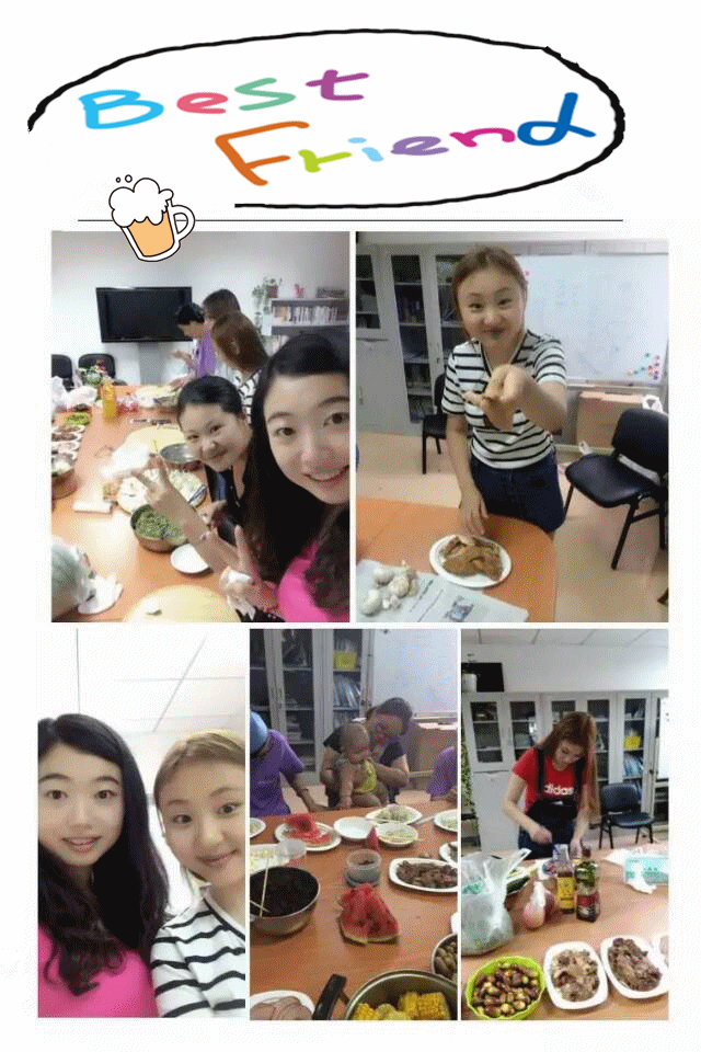 还有许多吃食都是兄弟姐妹们从他们的小家带来的,比如:杨老师自家酱的牛肉、鸭脖、林菲姐、王伟哥、璐璐姐带的熟食,京津姐煮的花生毛豆、彩虹姐腌的泡菜,晓鹏姐老家的木耳、晓光姐的玉米,好多好多,各各美味。在这个欢快的气氛里,静姐即使人没到场,也给我们带来了最精致的蛋糕,让我们甜到心里。吃的时候我们互相你给我,我给你的,不分彼此,热情高涨。真真体会到:我们是一家人,相亲相爱的一家人。