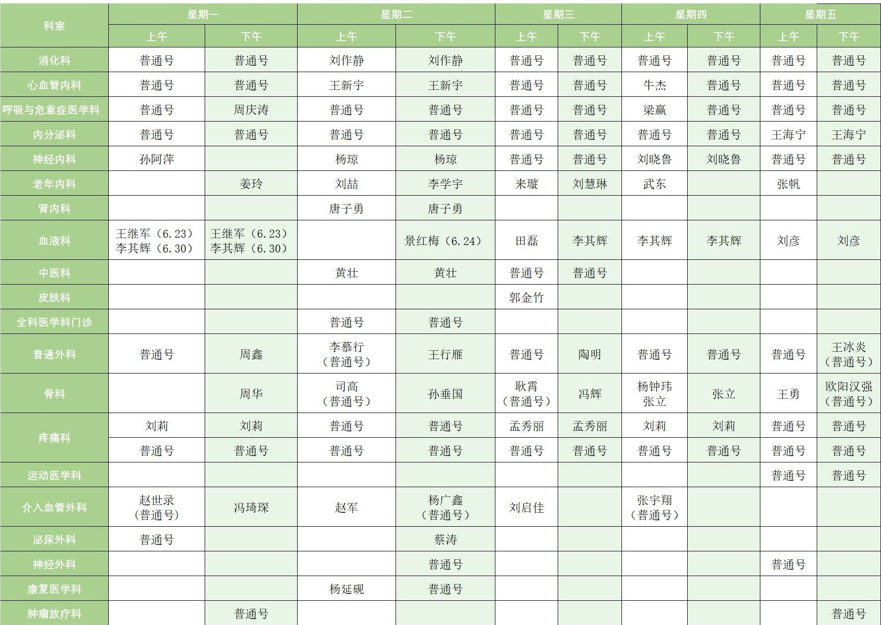 2025年6月北京大学第三医院海淀北部院区出诊安排