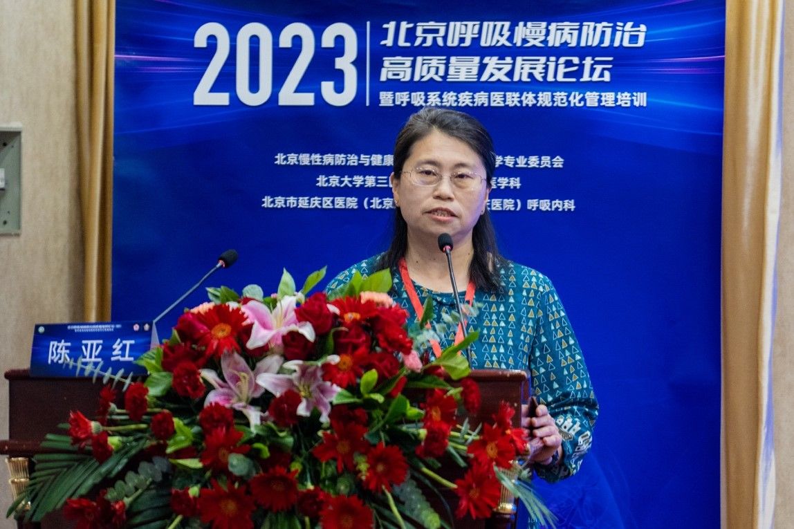 北医三院呼吸与危重症医学科副主任、北京慢性病防治与健康教育研究会呼吸病学专业委员会主任委员陈亚红致欢迎辞。