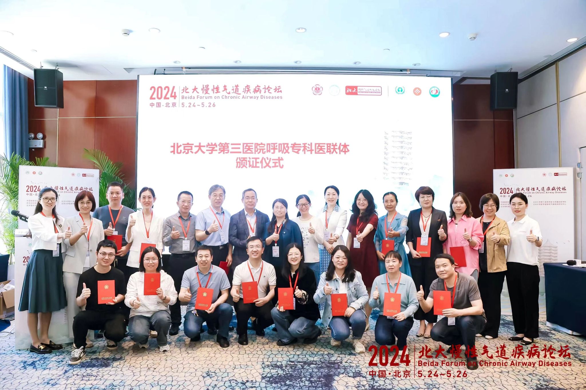 论坛期间,举行了“北京大学第三医院呼吸专科医联体颁证仪式”,呼吸与危重症医学科为22家区域医联体成员单位颁发证书。