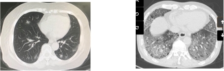 图1A 新冠患者A肺CT 图1B 新冠患者B肺CT