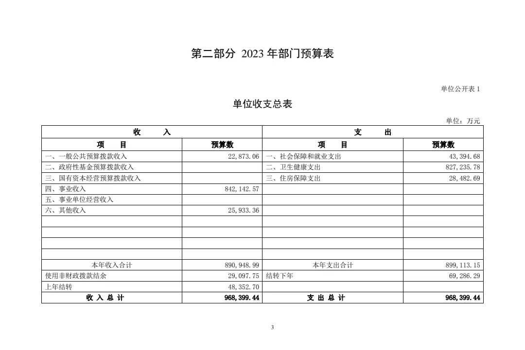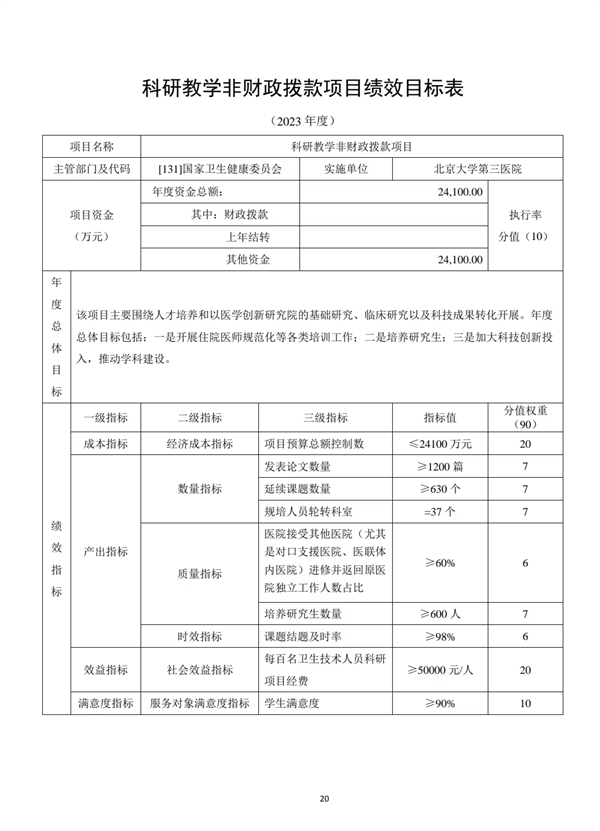 北京大学第三医院2023年部门预算