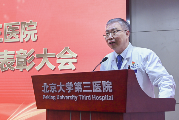 会上,付卫院长首先向所有护理工作者致敬。作为一名与护理团队朝夕相伴35年的外科医生,更能感受护士的艰辛与快乐。付卫院长强调,护理工作是医疗质量和患者安全的基石,2022年医院取得的成绩都离不开护理团队的辛勤工作和无私奉献。在过去三年的抗疫路上布满了护理人的足迹,尤其在去年年底的新冠病毒肺炎危重症患者救治中,护理团队的卓越贡献将会铭记在每个人心里。同时,护理工作在医、教、研等方面都取得了丰硕的成果。希望护理团队继续发扬南丁格尔精神和“团结、奉献、求实、创新”的院训精神,在救死扶伤的岗位上继续拼搏奋斗,取得更多、更好的成绩!随后,与会领导宣读了北医三院护理工作者在海淀区、北京大学医学部获奖的个人和集体名单,并为获得北京大学第三医院表彰的优质护理先进集体和个人颁发荣誉证书。