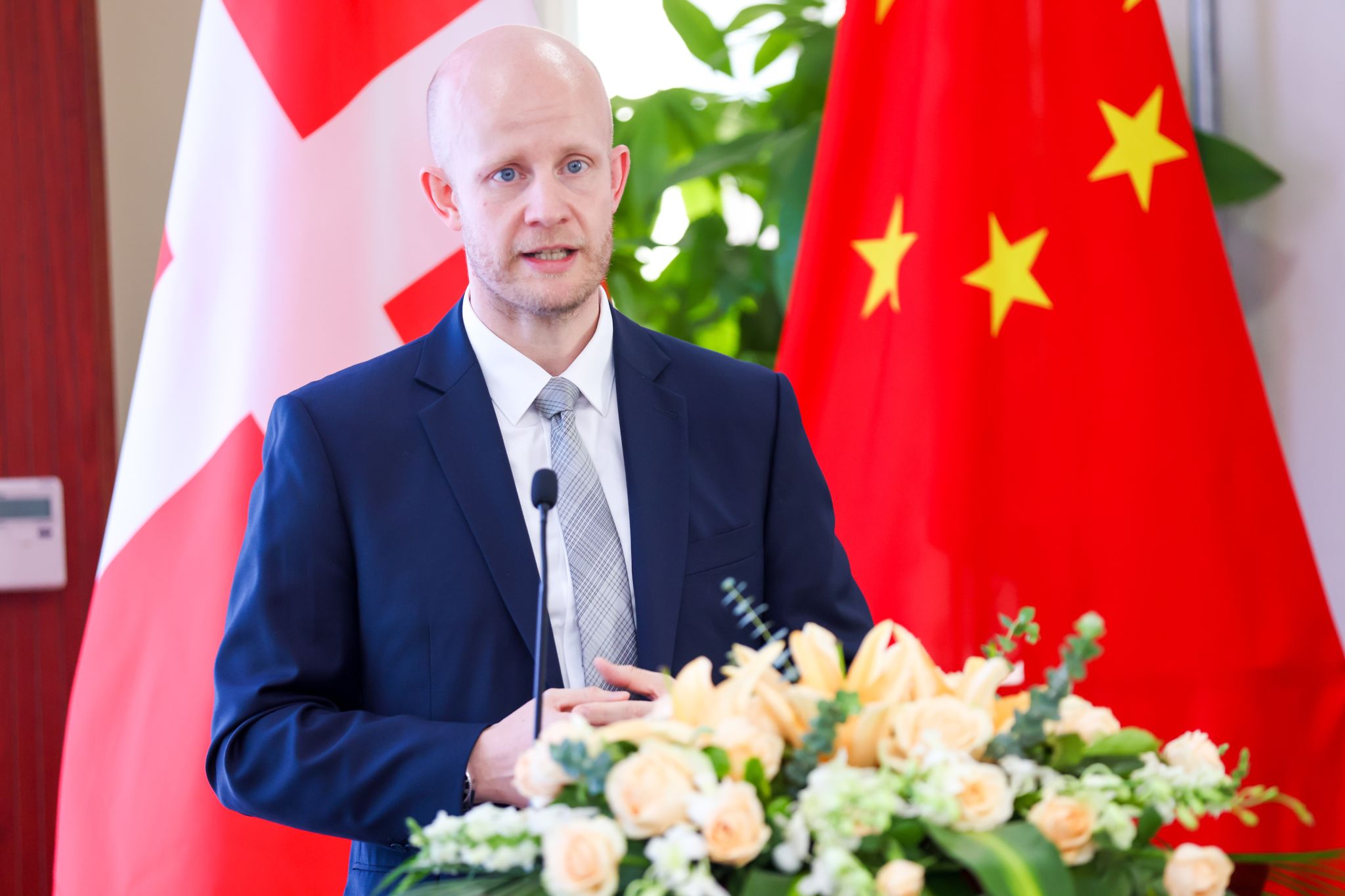 丹麦王国驻华代表团Morten Kruse先生致辞,期待今后双方加强合作交流,推动中丹两国在新药研发方面的共同发展。