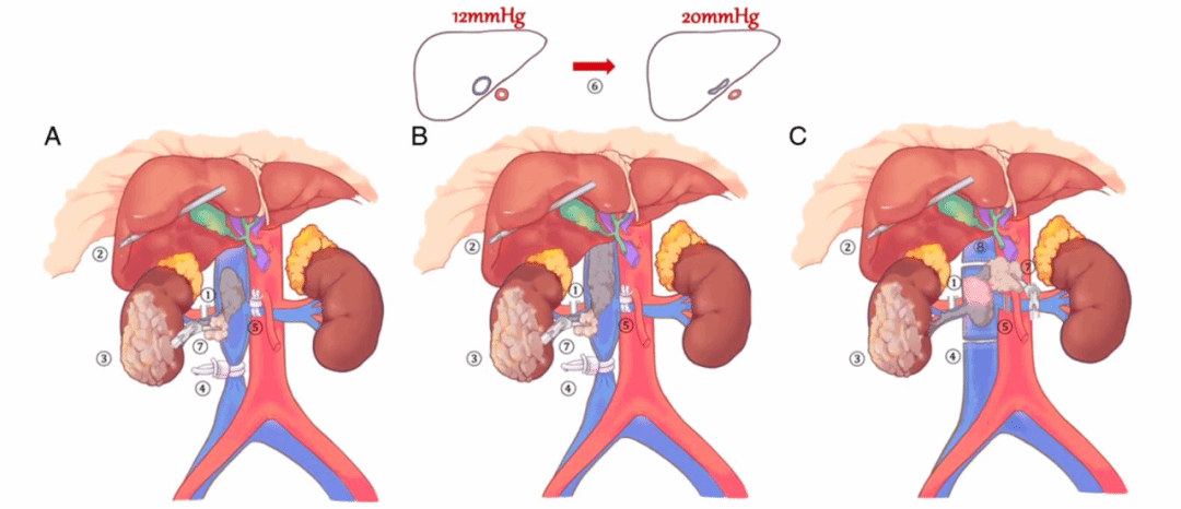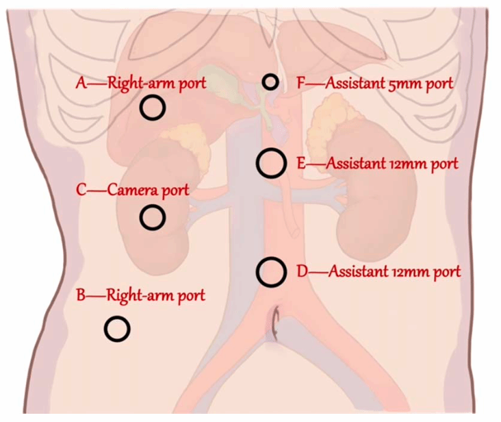 图1 | 机器人辅助下腔静脉近心端不阻断技术的Trocar布局