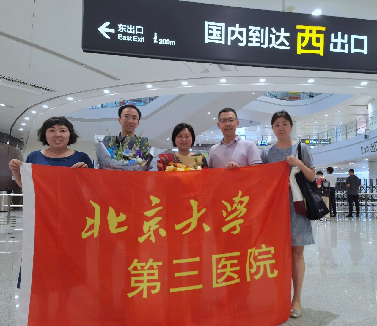 8月21日,我院援疆干部、神经内科副主任杨琼圆满完成为期一年半援疆任务返回北京。工会常务副主席刘温文、神经内科党支部书记罗永梅和党院办、科室代表到机场迎接。刘温文副主席代表医院向杨琼送上鲜花,并对她的援助工作给予充分的肯定和赞许,对其家属一年半的付出和奉献表示感谢。