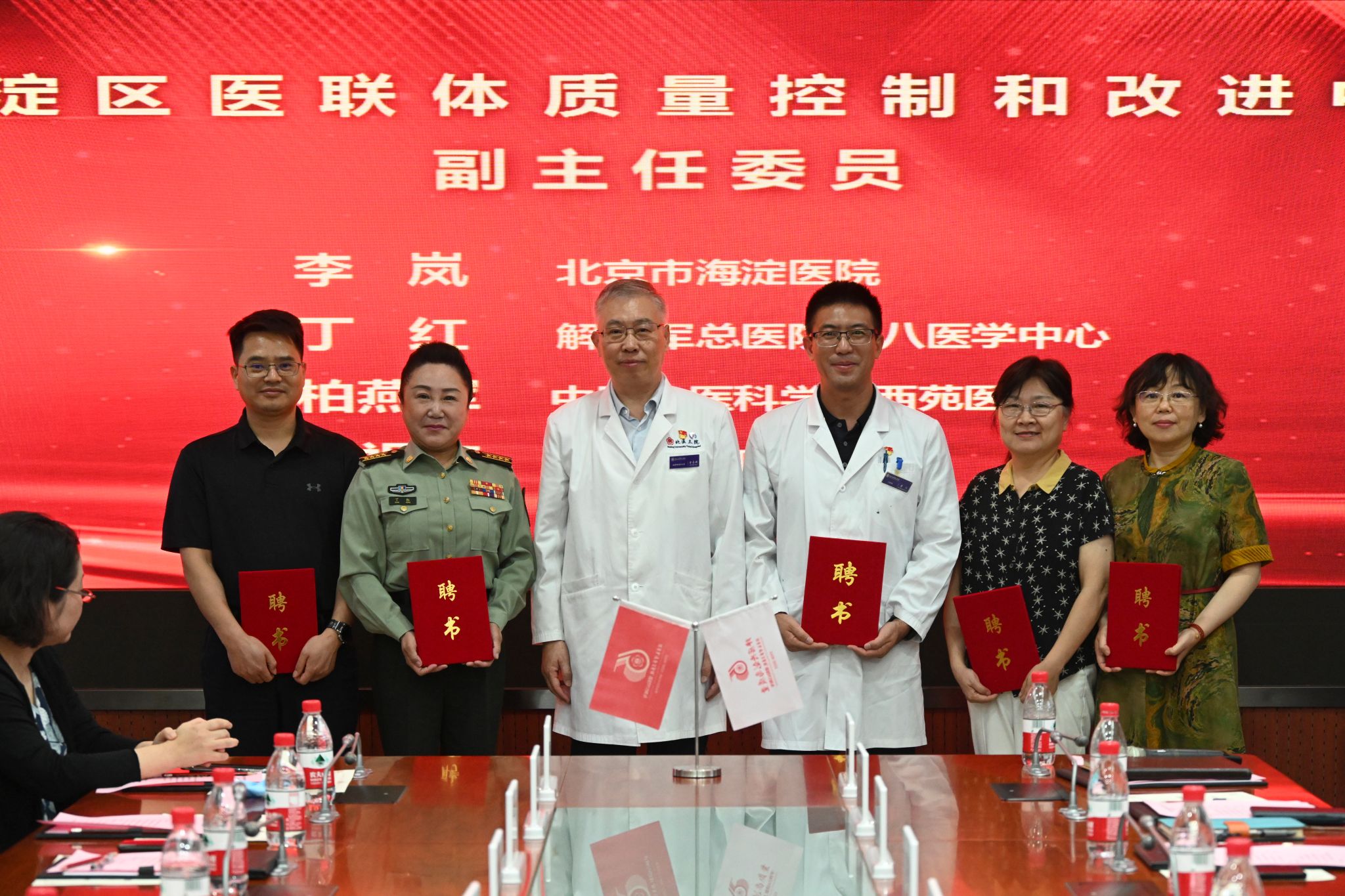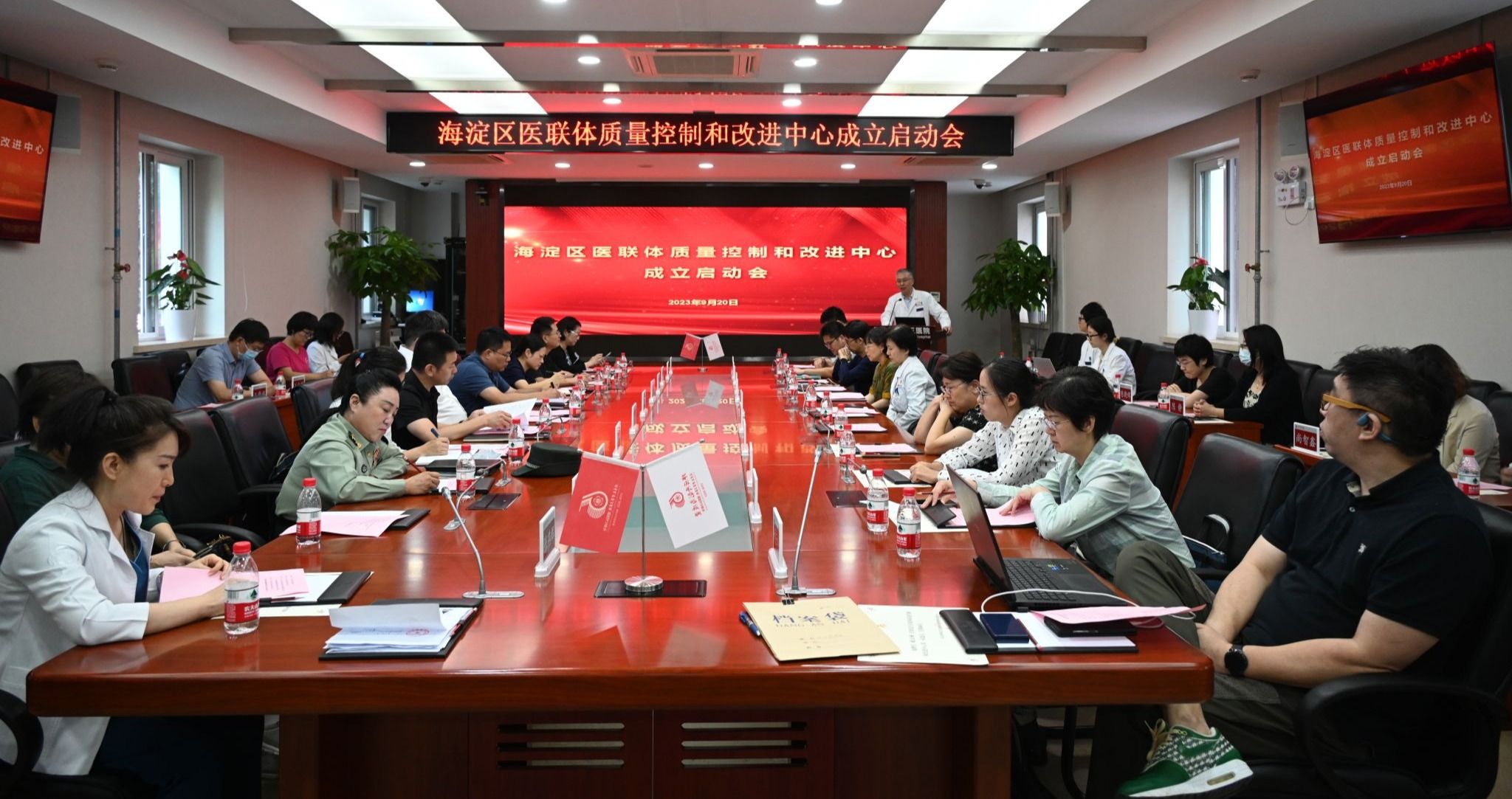 2023年9月20日下午,海淀区医联体质量控制和改进中心成立启动会在我院举行。海淀区卫生健康委副主任郑洋、海淀区医院管理中心副主任杨福生及相关部门领导,我院党委书记金昌晓,门诊部主任朴玉粉、副主任兼医联体办公室主任雷祎,医务处质控办主任董书,以及海淀区医联体质量控制和改进中心第一届委员出席启动会。启动会由雷祎主持。