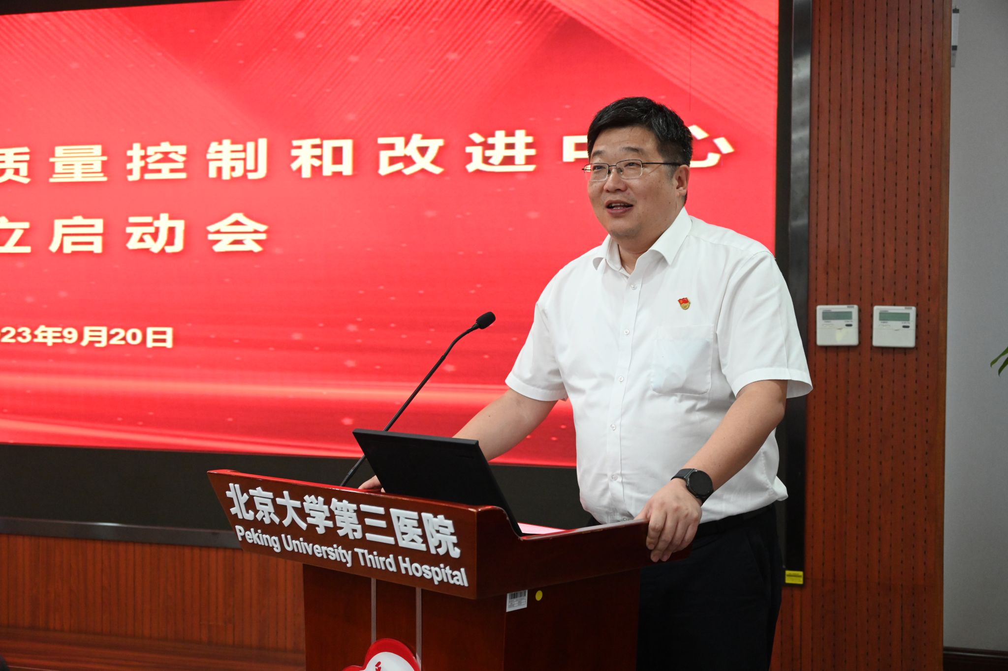 郑洋副主任在致辞时充分肯定了我院医联体工作。他强调,分级诊疗是健康中国建设和深化医药卫生体制改革的核心内容,医联体建设则是实现分级诊疗有序发展、构建优质高效的医疗卫生服务体系的重要抓手。北医三院作为海淀区中东部医联体核心医院,注重推动区域医联体建设,在医联体建设方面进行了积极探索。希望医院能够规范质控中心运行管理,会同各委员单位研究制定质控中心工作方案,做好医联体绩效考核,推动全区医联体工作取得更好成效。