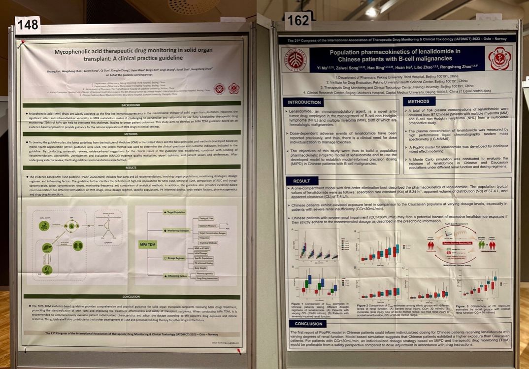目前,我院赵荣生教授团队已多次获邀参加IATDMCT全球大会进行学术交流。2017年,赵荣生受邀在第15届IATDMCT 全球大会作“中国治疗药物监测研究进展”的主题报告。2021年,宋再伟在第19届IATDMCT全球大会进行了“中国大剂量甲氨蝶呤循证用药指南”(通讯作者:赵荣生)的壁报交流。2022年,宋再伟在第20届IATDMCT 全球大会进行了“来那度胺的治疗药物监测?一项‘暴露-安全性’的观察性研究结果”(通讯作者:赵荣生、景红梅)的主题报告。