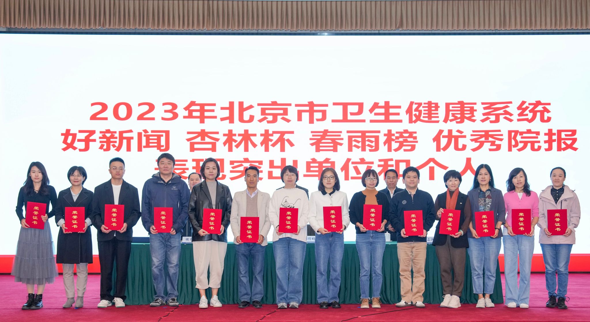 2023年10月24日,2023年首都卫生健康系统“好新闻 杏林杯 春雨榜”品牌活动获奖名单揭晓,我院多篇作品获奖,医院荣获第22届“卫生健康好新闻”组织奖。
