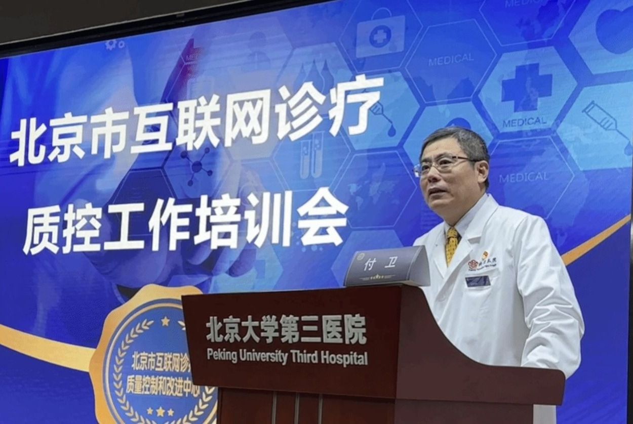 质控中心主任、北医三院院长付卫教授首先致辞。付院长总结了质控中心成立以来开展的探索性工作:建立北京市互联网诊疗质控的工作机制,发布多项指南规范,优化市级互联网医院监管平台建设,完成全市互联网诊疗基线调研报告和首次工作督导,为全市互联网医院的质控工作提供了依据,并在北京市医疗专业质控中心评估考核中取得优秀成绩。希望通过培训,交流工作实践经验,共同促进我市互联网诊疗工作的进一步发展。