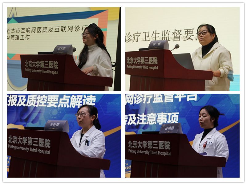 随后,北京市卫生健康委医政医管处刘宇家解读了北京市互联网诊疗相关政策,强调了监管要点。北京市卫生监督所医疗卫生监督一科科长徐娜详细讲解了互联网诊疗监督管理要点,介绍了违法行为的处罚情况,并探讨了执法过程中的难点问题。北医三院医务处副处长吴昕霞汇报了质控中心2022年度督导质控工作和结果,并解读了《北京市互联网诊疗电子病历应用管理指南》和《北京市互联网诊疗质控中心联络员工作制度》。北医三院互联网医院办公室吕艳丽汇报了北京市互联网诊疗监管平台的相关情况,详细分析了使用过程中的热点问题和注意事项。