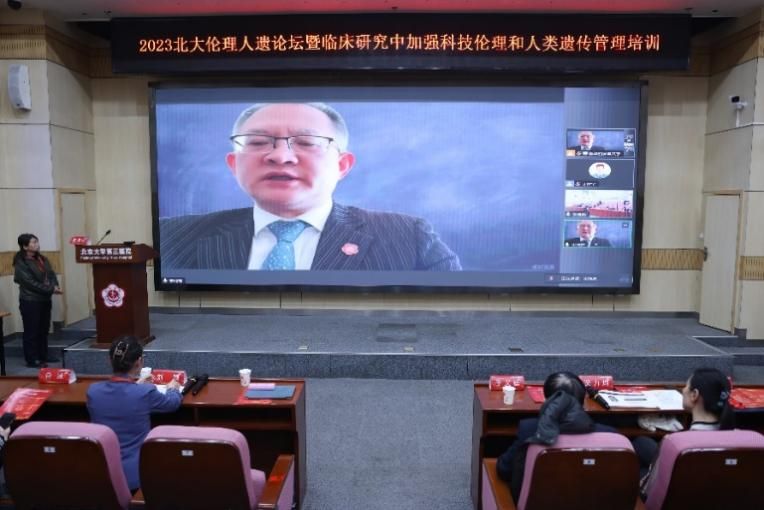 北京大学第三医院副院长、医学创新研究院常务副院长宋纯理通过视频致辞。他表示,北京大学在创建世界一流研究型大学和推动科技创新中要发挥引领作用,同时强调在科技活动中加强伦理审查和人类遗传资源管理的重要性,希望通过培训打造出更好的伦理评审和管理团队,助推医院的高质量发展。