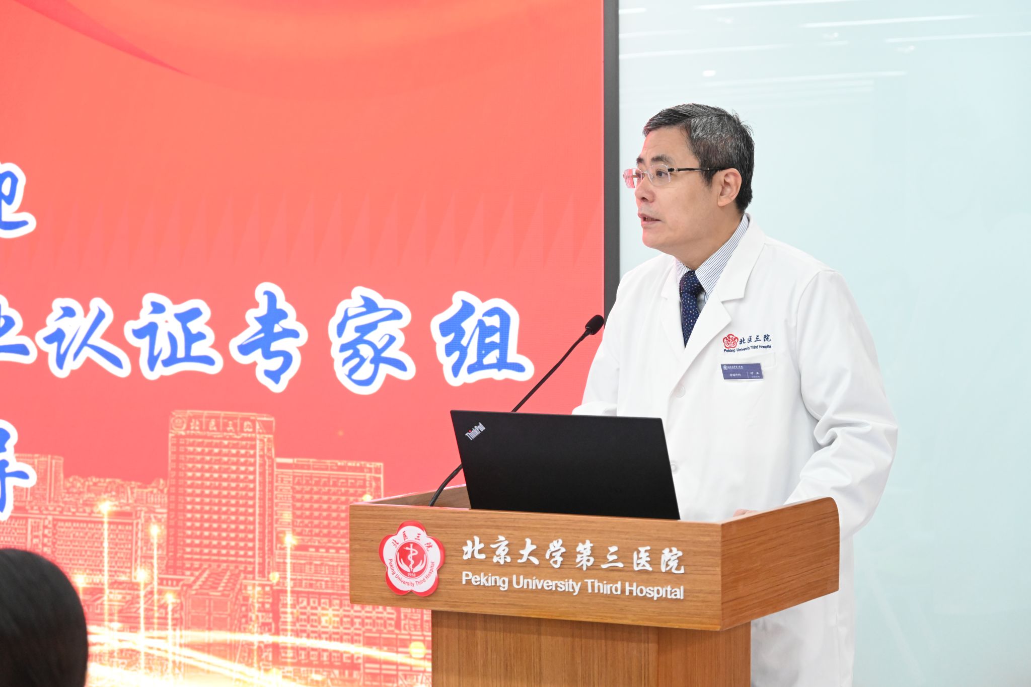 金昌晓书记在致辞中表示,北京大学第三医院自1987年开始临床医学本科生教学,医院高度重视学生培养,以立德树人为目标,统筹医、教、研资源平台,不断完善机制,激发教师育人动力。医院希望通过此次认证,进一步推进“以问题为导向”的临床教学建设,加强医教协同,为党育人,为国育才,不断创新,为北京大学双一流建设和医院的高质量发展贡献智慧和力量。