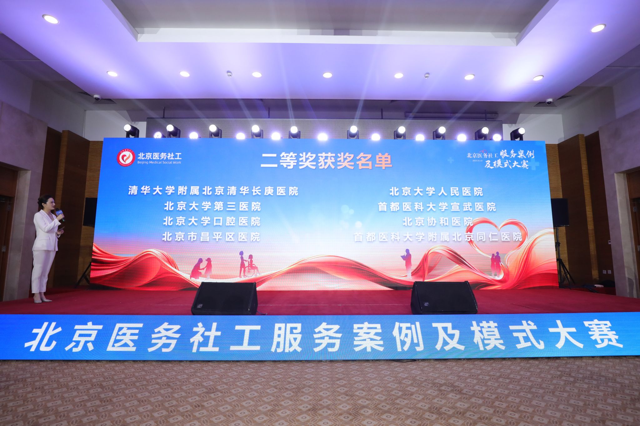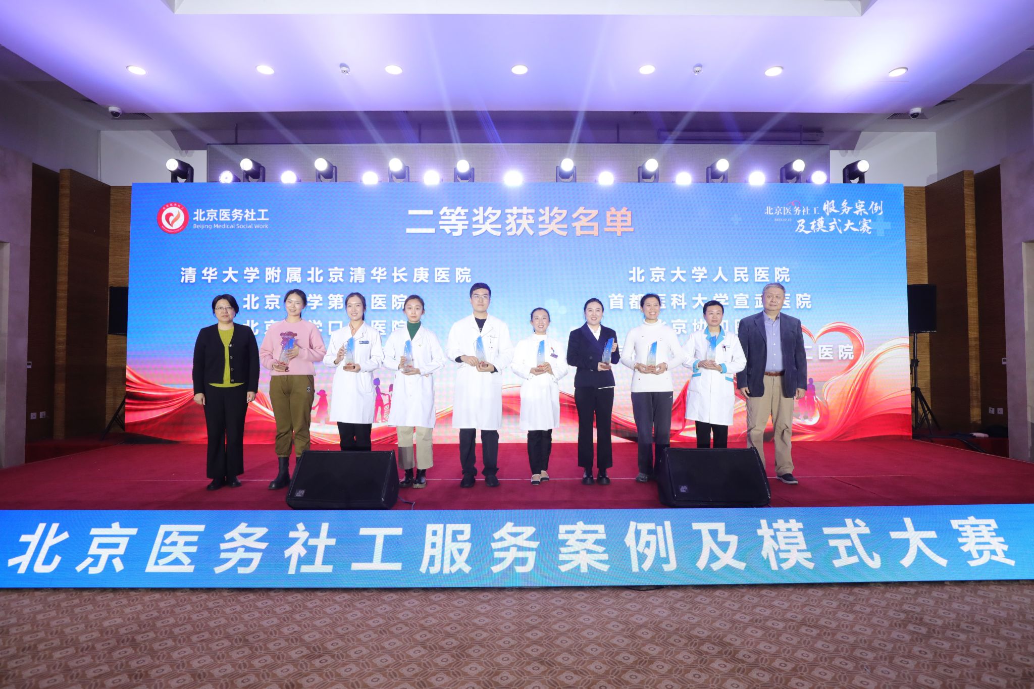 2023年12月12日,由北京市卫生健康委主办、北京医院协会医务社会工作专业委员会承办的首届北京医务社工服务案例及模式大赛在北京会议中心举行。经过初赛阶段评选, 20家医疗机构进入决赛名单,模式类及案例类各10个;我院以模式类案例进入决赛。