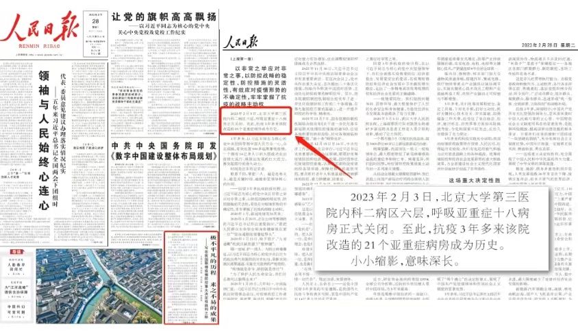 北医三院抗疫工作登上人民日报2023年2月28日头版