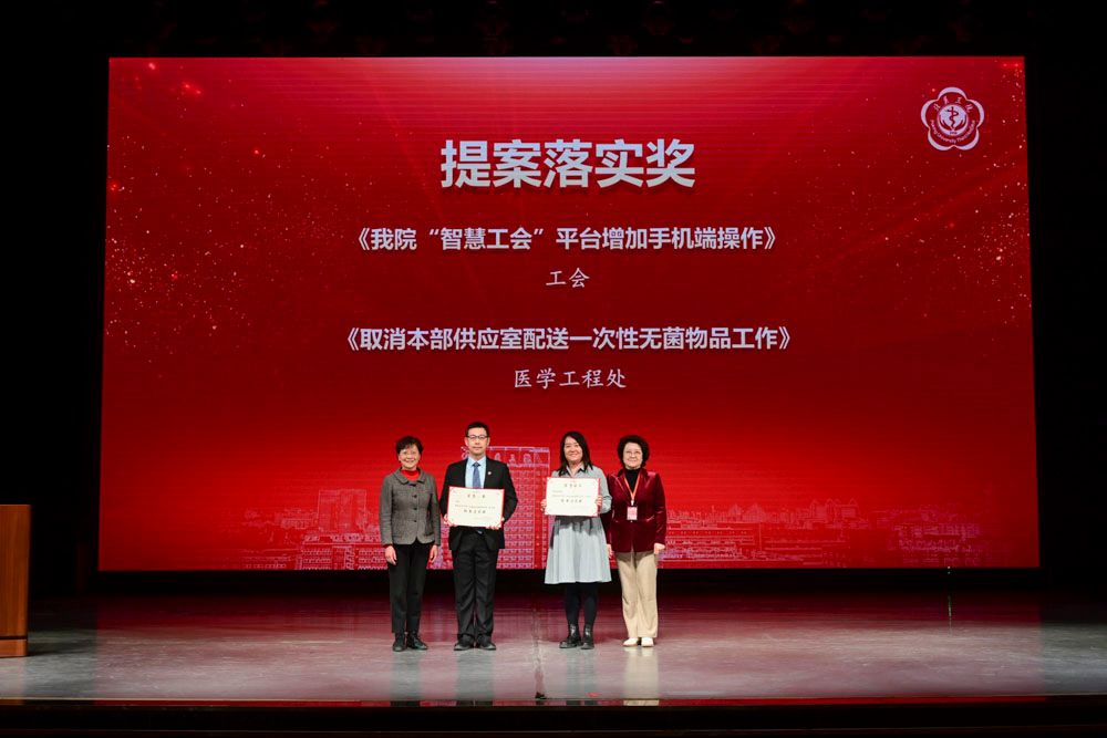 工会承办的《我院“智慧工会”平台增加手机端操作的提案》、医学工程处承办的《取消本部供应室配送一次性无菌物品工作的提案》荣获提案落实奖。