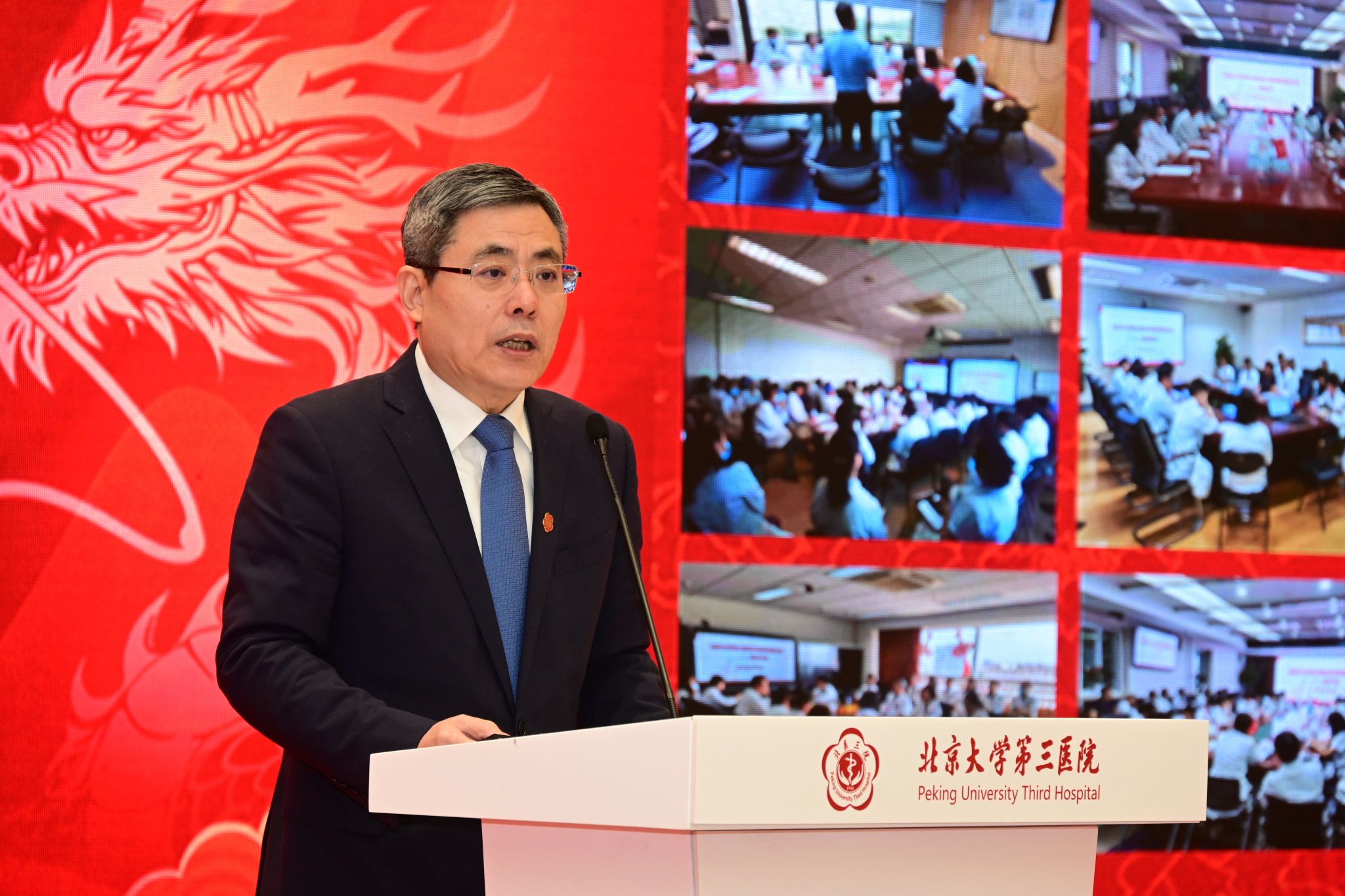 大会邀请了第十、十一届全国人大常委会副委员长、第十二届全国政协副主席、中国科协名誉主席、中国科学院院士韩启德,北京大学常务副校长、医学部主任、中国工程院院士乔杰,北京市科委、中关村管委会党组书记、主任张继红,北京市科委、中关村管委会党组成员、副主任龚维幂,复旦大学医院管理研究所所长高解春,首都医科大学附属北京天坛医院院长王拥军等嘉宾出席。北医三院党委书记金昌晓、院长付卫等党政领导班子成员,分院区党政领导,医院相关委员会专家、中层干部、学术带头人后备人选、青年学术骨干等600余人共聚一堂,共同探讨医院的发展现状,深入剖析发展痛点,为医院高质量发展献计献策,集思广益,共谋发展。