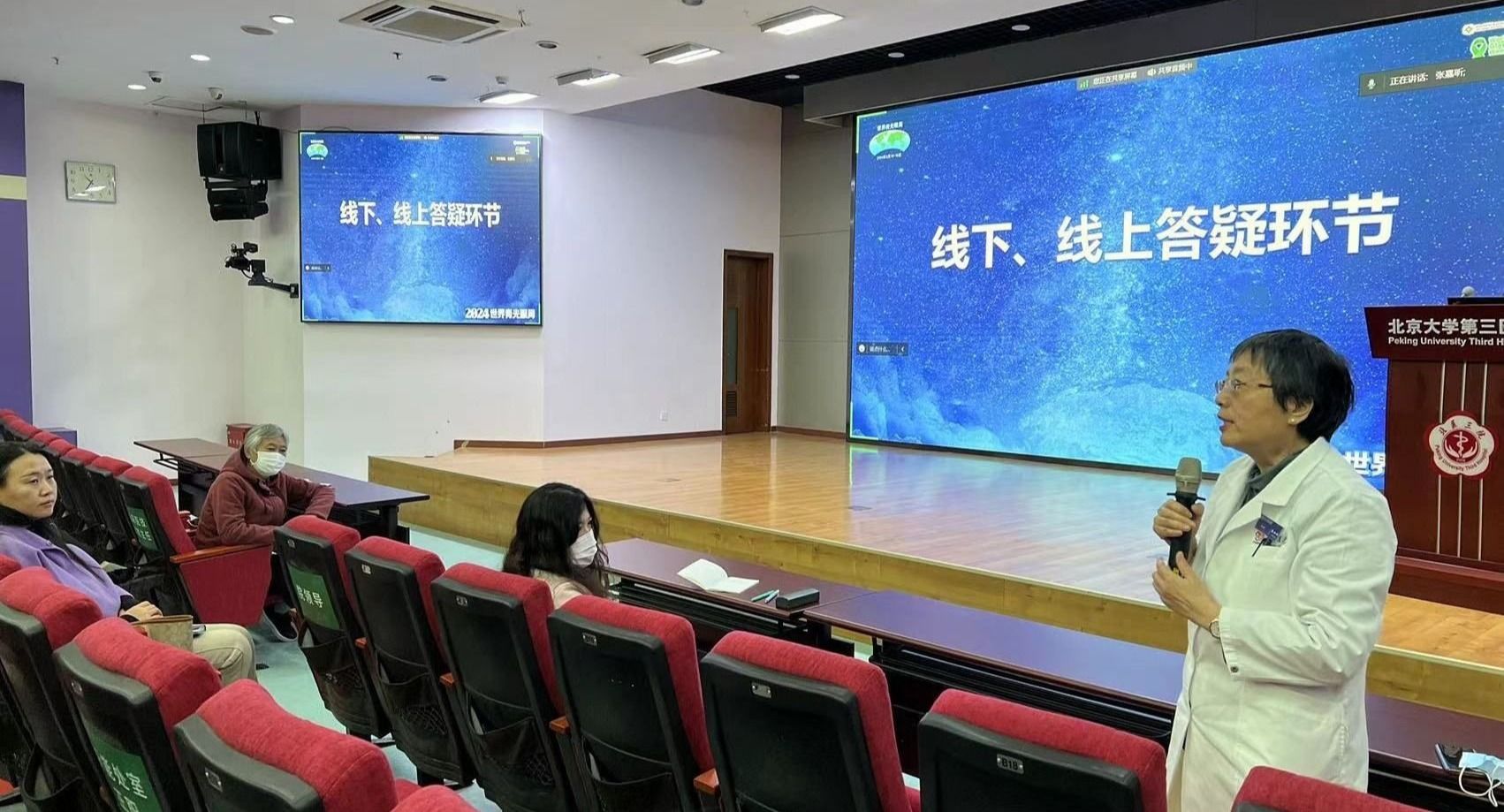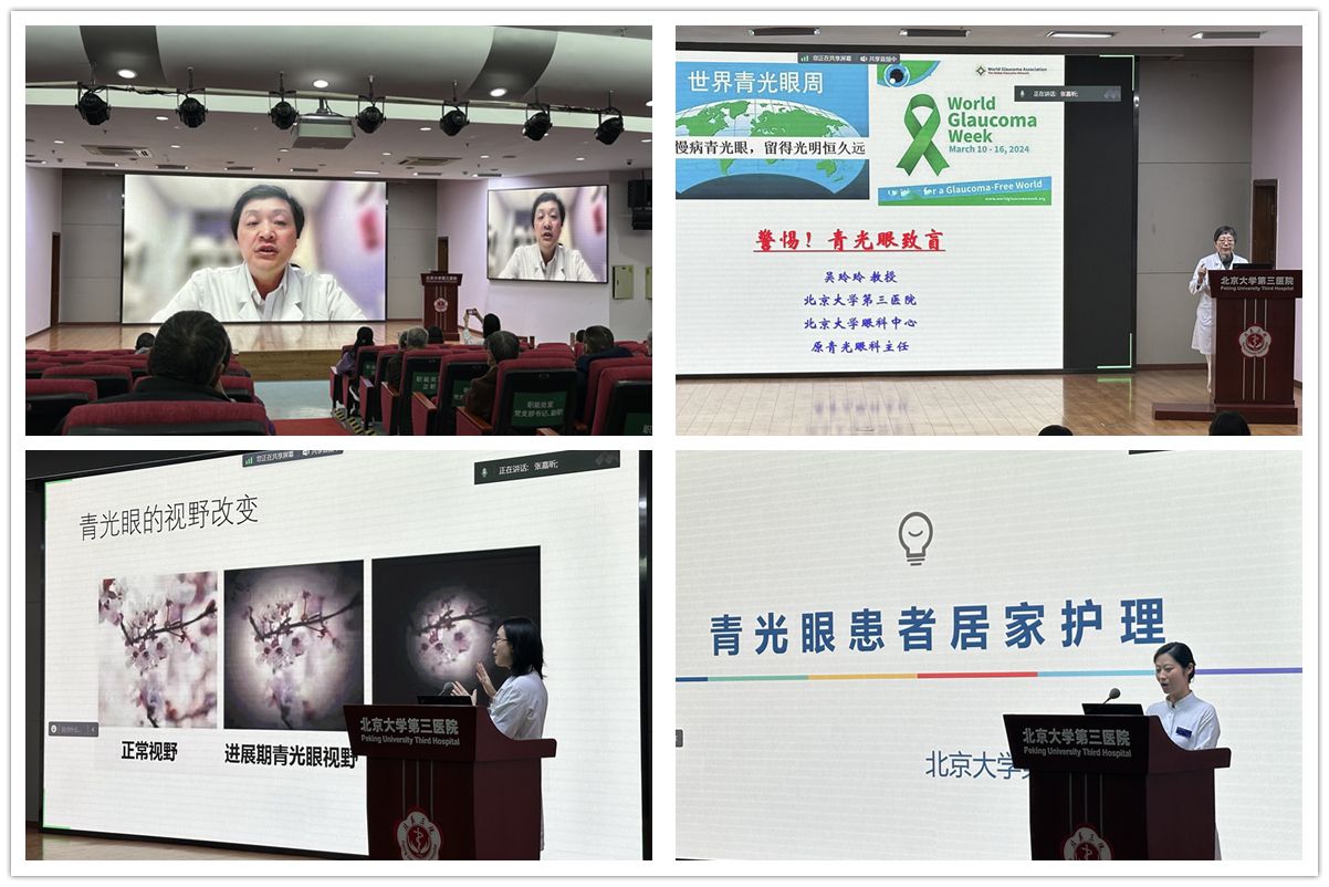 2024年3月10日至16日是第17个“世界青光眼周”,今年的主题是“共管慢病青光眼,留得光明恒久远”。为普及和宣传青光眼知识,提高青光眼的知晓率,3月16日上午,北京大学第三医院眼科青光眼专科在科学报告厅举办青光眼俱乐部活动,为满足群众需求,活动特别开设在线直播,让无法到场的患者和家属也能实时参与,在线人数超过两千人。
