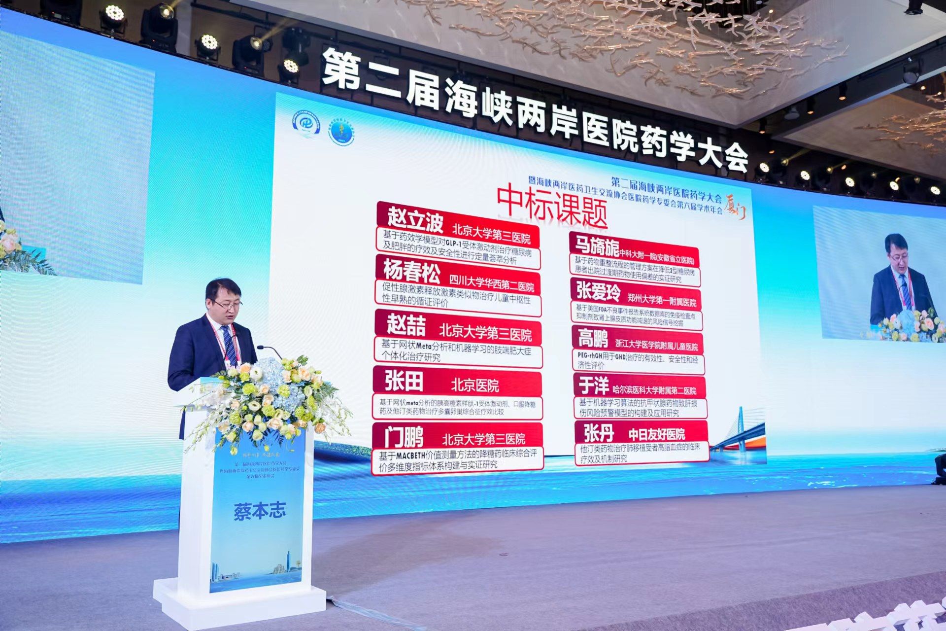 在项目发布环节,我院药学部赵立波教授申报的《基于药效学模型对GLP-1受体激动剂治疗糖尿病及肥胖的疗效及安全性进行定量荟萃分析》、赵喆主管药师申报的《基于网状Meta分析和机器学习的肢端肥大症个体化治疗研究》以及门鹏主管药师申报的《基于MACBETH价值测量方法的降糖药临床综合评价多维度指标体系构建与实证研究》,获得海峡优秀青年科研项目资助。在分论坛环节,赵立波代表获得资助药师进行项目分享。本次科研项目申报,共收到全国两岸四地青年药师提交的50多个项目标书,经过专家委员会盲审,共评出10项进行资助,我院为获得资助最多的医院。