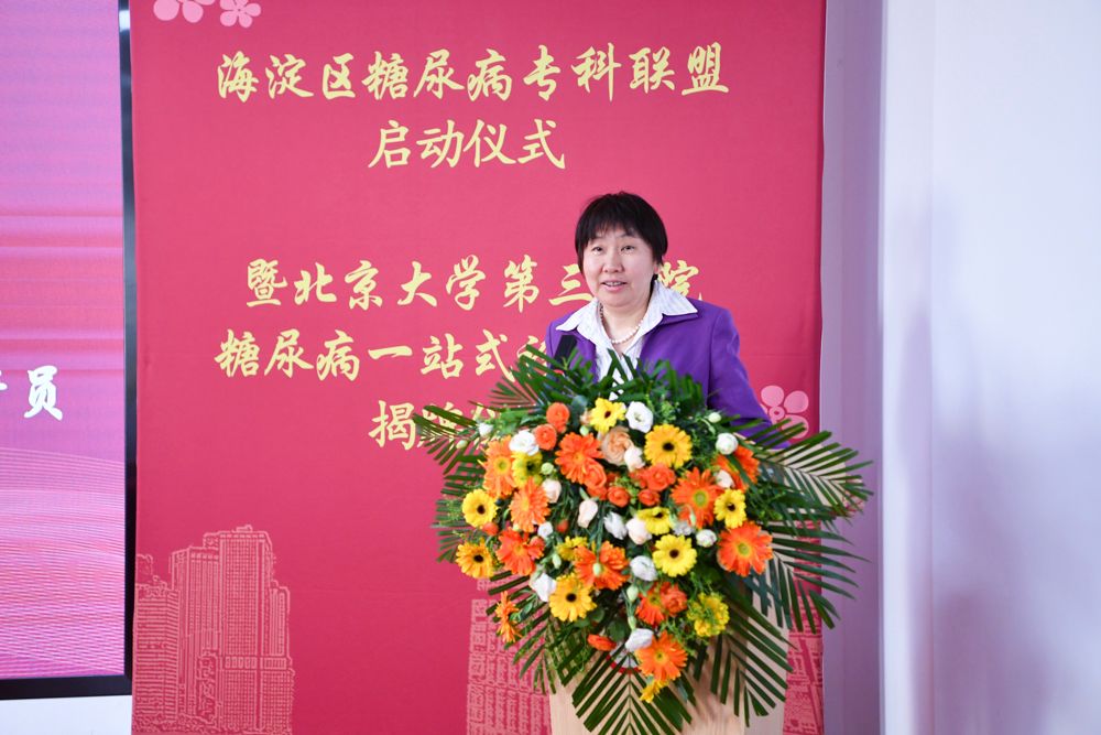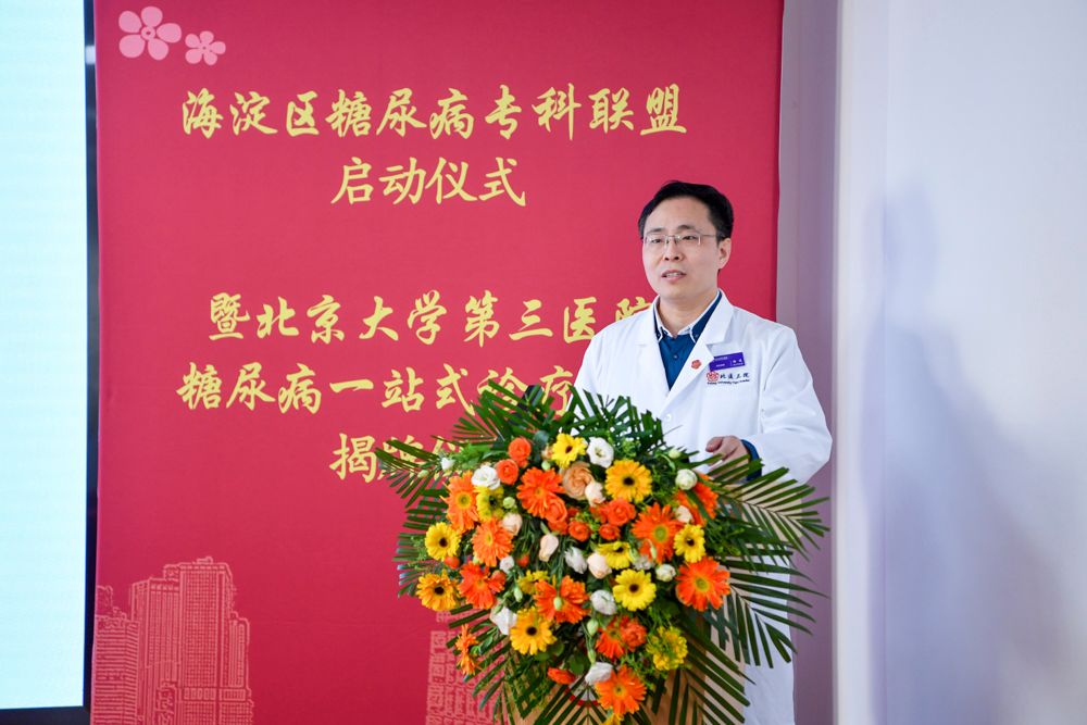 “在这春暖花开的美好季节,我们共同见证海淀区糖尿病专科联盟建设工作启动,暨北医三院糖尿病一站式诊疗中心成立。”北医三院付卫院长在随后的致辞中表示,在我国,糖尿病患病率居高不下,带来的社会经济负担沉重,防控的任务艰巨。希望能通过建设专科医联体,优化糖尿病及其并发症的评估体系和诊疗体系,建设转诊和慢病管理信息互联互通的网络体系,切实提高区域内以糖尿病为代表的慢性病管理效能,打造可在海淀区,乃至全市、全国可推广的慢病管理典范,为糖尿病患者提供全生命周期、高质量医疗服务。