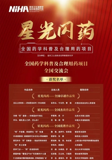 此次获奖展现了我院临床药学团队的专业素养和风采,也是推动药学科普精品化、常态化的有益尝试。