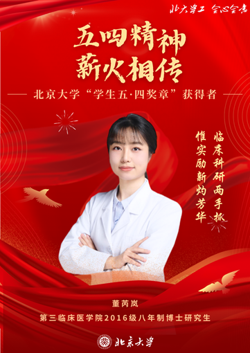 日前,北京大学揭晓第十四届北京大学“班级五·四奖杯”“学生五·四奖章”评选结果。经院系推荐、学生奖励奖学金评审委员会秘书处审核,专家材料初评,终评答辩等环节,北京大学第三医院2017级临床三班获得第北京大学“班级五·四奖杯”;2016级八年制学生董芮岚获得北京大学“学生五·四奖章”。