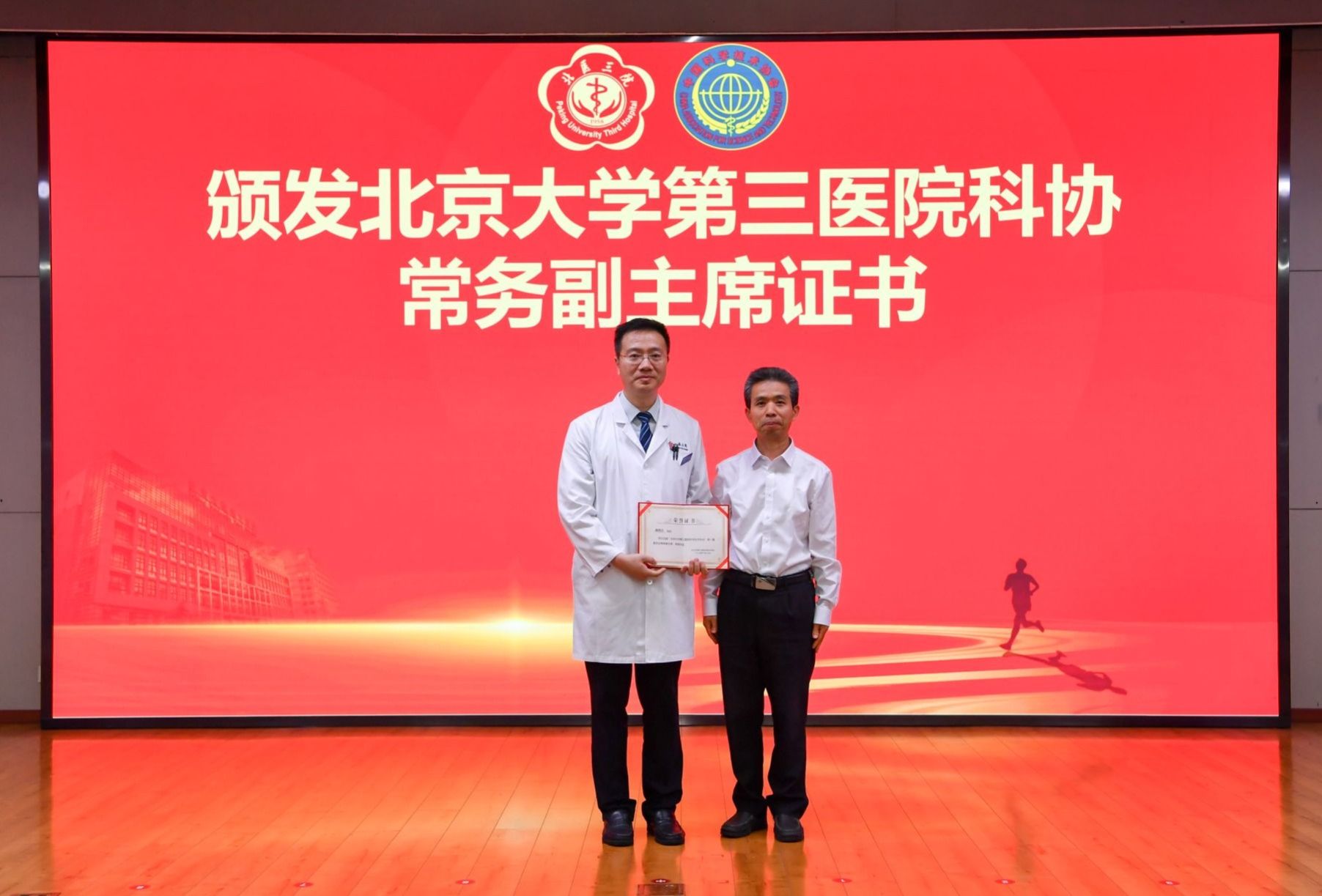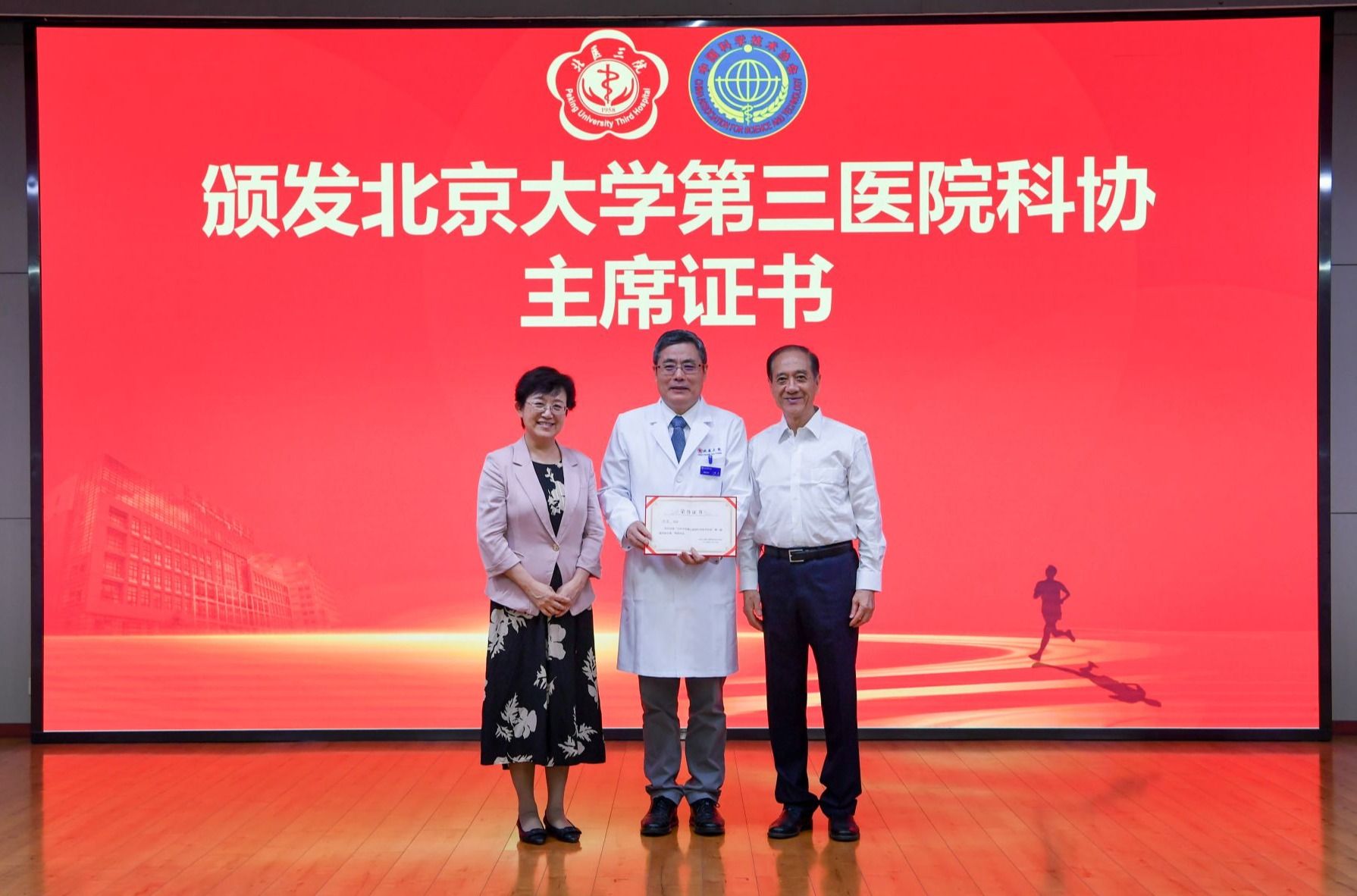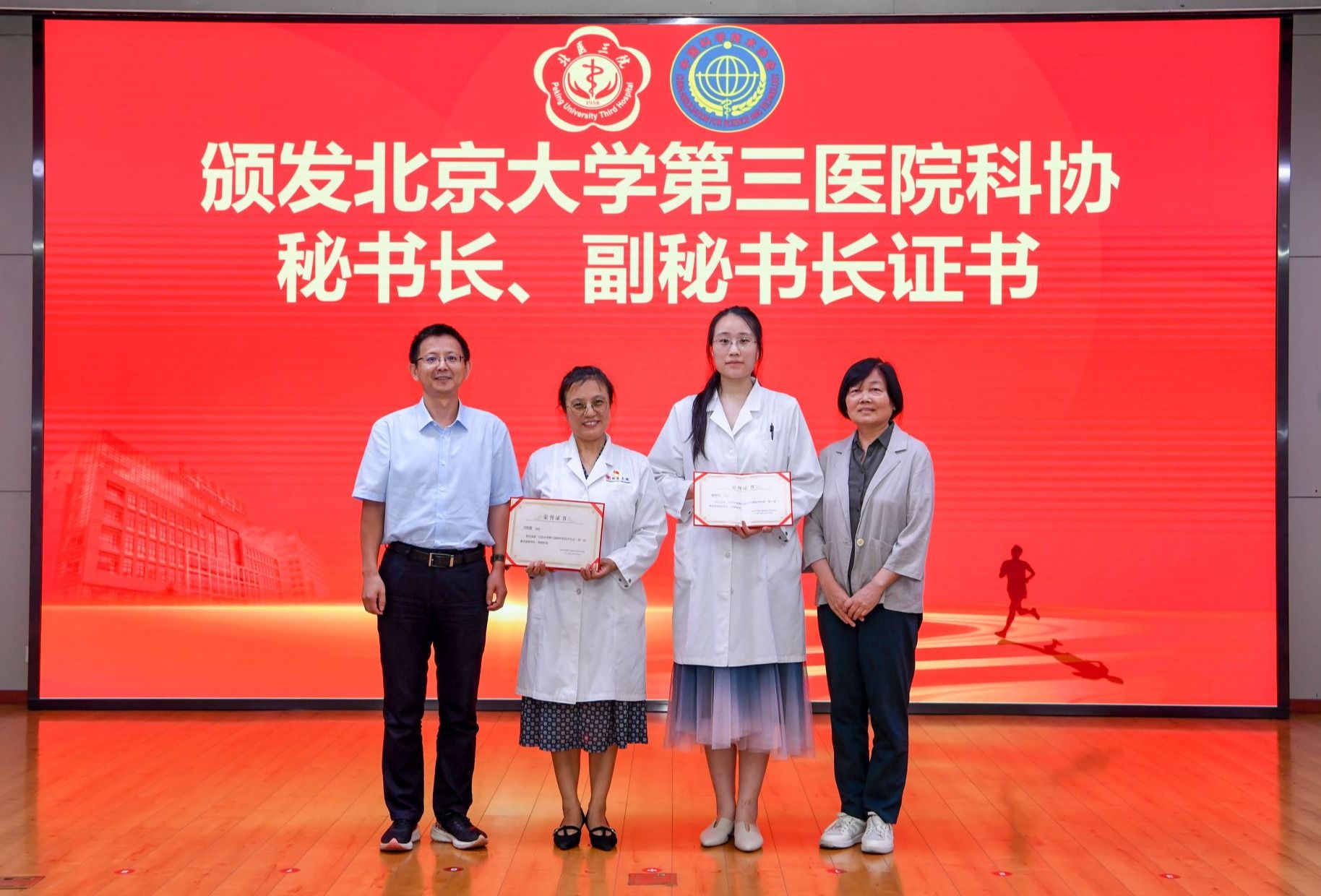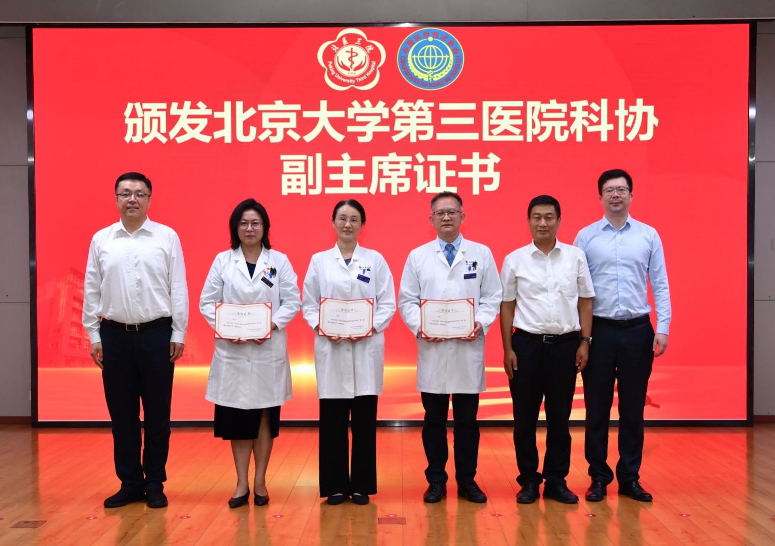 揭牌仪式后,与会领导为北医三院科协主席、常务副主席、副主席、秘书长、副秘书长颁发证书。