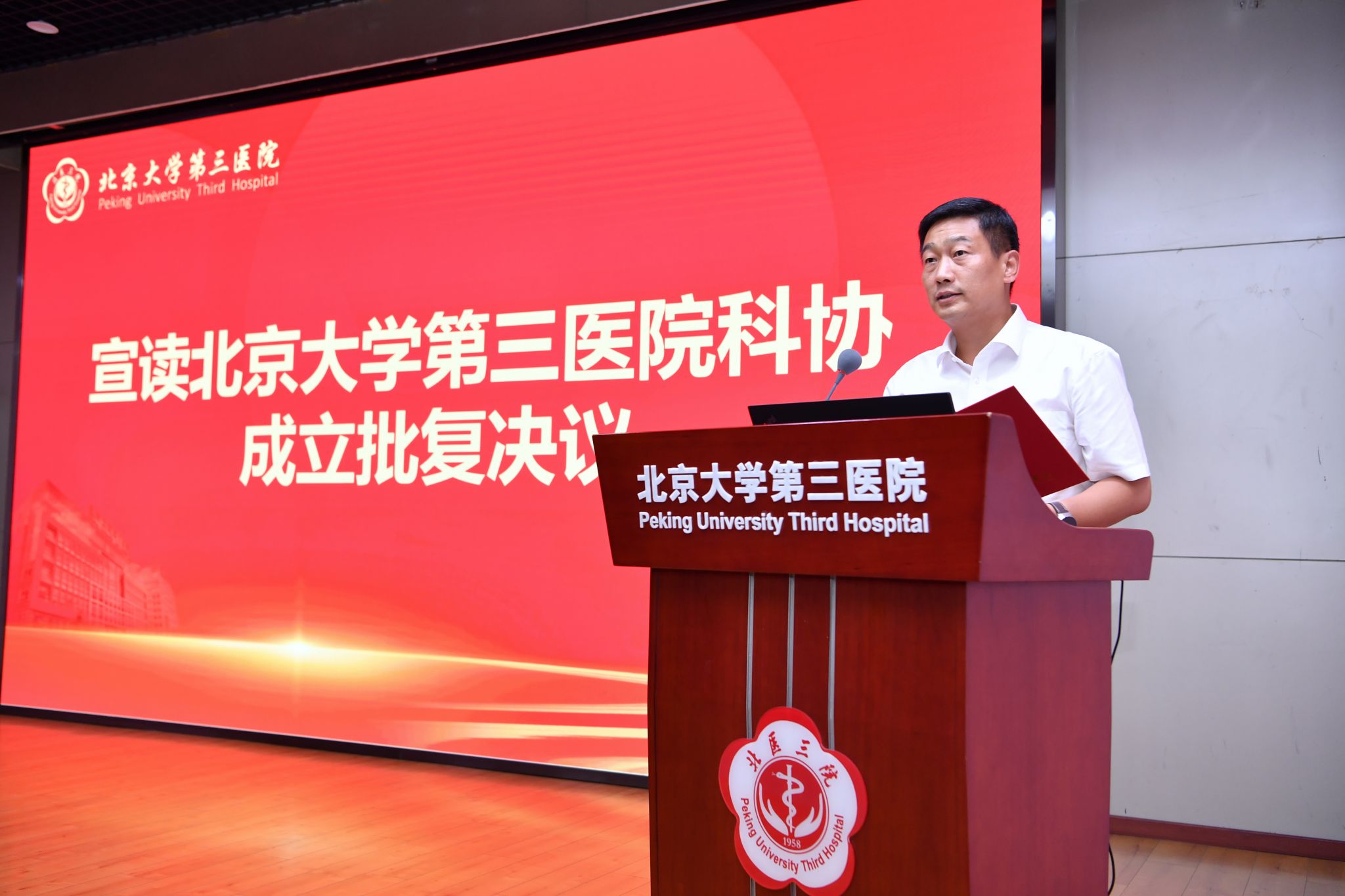 成立大会上,北京市科学技术协会副主席郭鲁钢宣读了《北京市科学技术协会关于北京大学第三医院科学技术协会成立批复决议》。