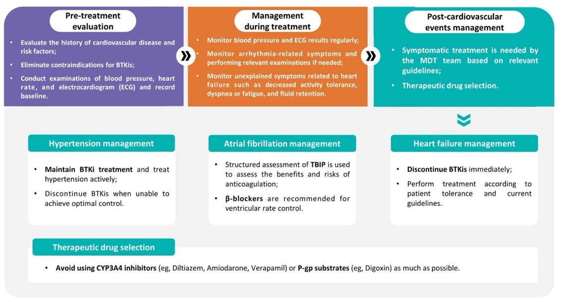 图2 BTK抑制剂相关心血管不良事件的全流程安全性管理策略