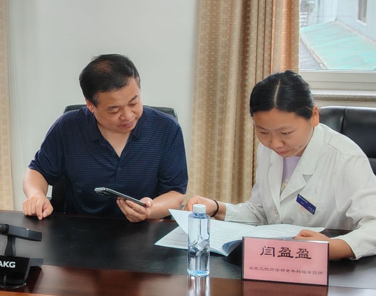 我院药学部杨丽副主任、药学部老年专科临床药师闫盈盈、全科临床药师带教师资赵悦,以及国家卫生健康委紧缺人才(临床药师)基地学员肖云峰、管悦组成的药师团队,与学院路社区卫生服务中心全科医生团队,共同为退役军人提供用药咨询及用药指导。