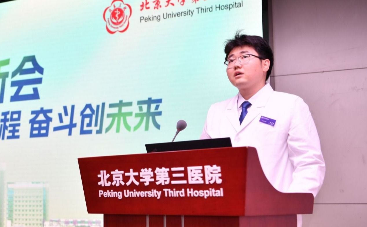 新入站博士后代表蔡嘉庚细数博士生涯中所经历的诸多“第一次”,表示这些经历塑造了他严谨的科研态度和勇于探索的精神,并特别向导师及北医三院的前辈们致以崇高的敬意。在他看来,博士后阶段不仅是学术与职业发展的重要桥梁,更是实现科研成果向临床应用转化的最佳契机。他表示,面对充满挑战的博士后生涯,既心存敬畏,又满怀决心。北医三院“团结、奉献、求实、创新”的院训精神已深植心中,激励着自己不断追求医学真理。