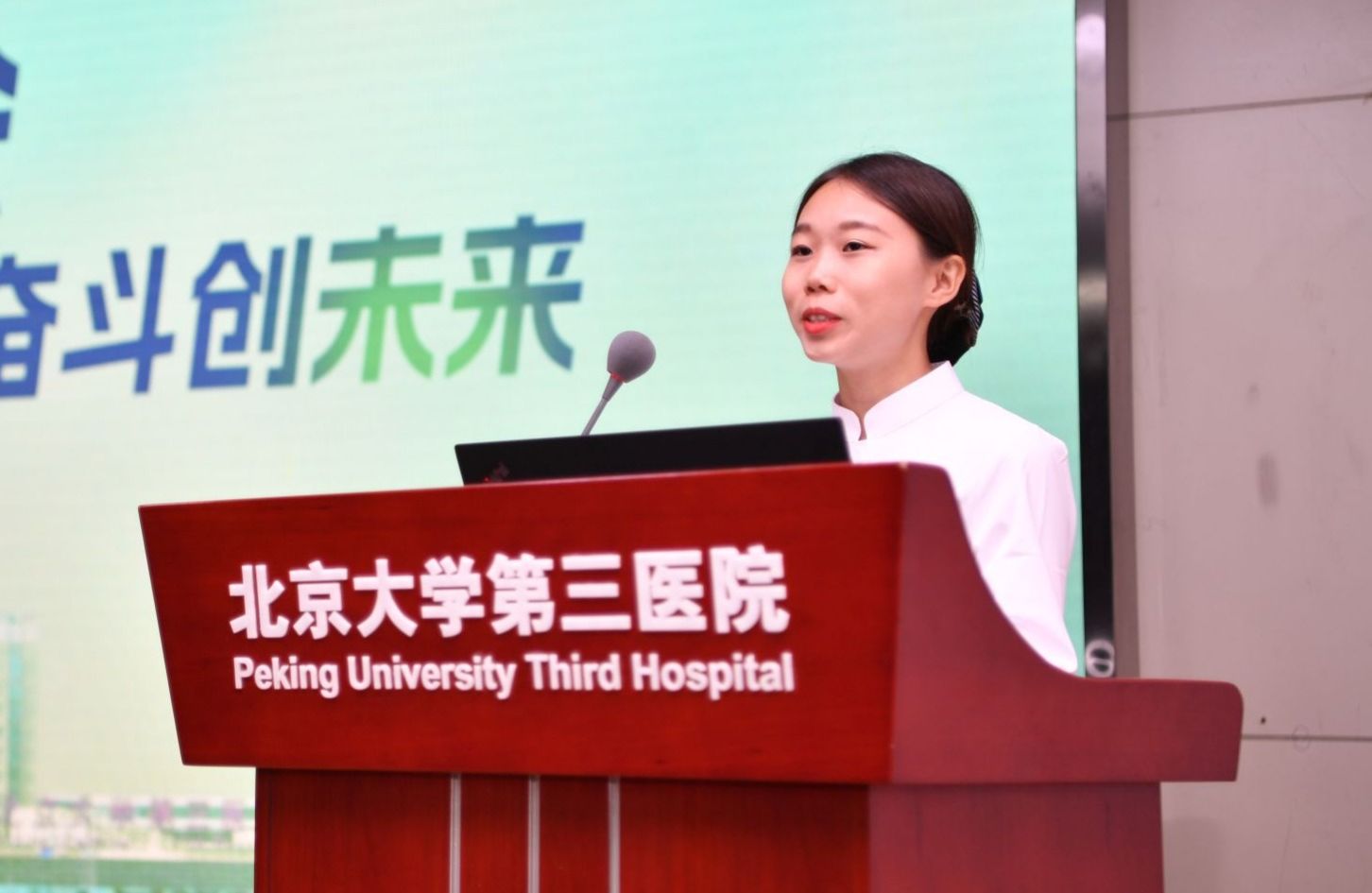 胡娴静护士历数了求学过程中的宝贵经历和对护理工作的无限热爱。她表示扎实的专业知识,系统的科研技能、多方协调的能力、敏锐的评判性思维以及勇于创新的精神,是她从三院这片沃土中汲取的最为宝贵的财富。她对三院专业、温馨、尊重和成长的护理文化表示深深认同,并以两个目标与新同事共勉:一是始终保持敬人、爱人之心,不忘初心,以患者为中心;二是保持专注、求索的心,不断学习和创新,提高护理质量。