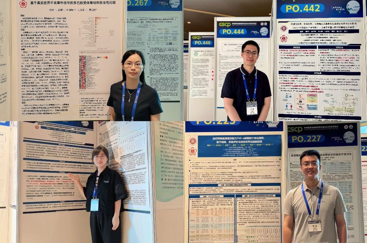 药学部易湛苗副教授、马毅主管药师、刘爽药师、胡杨博士研究生分别进行了题为“基于真实世界不良信号的多巴胺受体激动剂安全性比较”“风湿性疾病、疫苗接种、长期糖皮质激素和免疫抑制剂使用是否影响COVID-19感染的严重程度:一项基于中国人群的回顾性队列研究”“他克莫司个体内变异性与移植受者临床结局的相关性:一项队列研究与系统评价”“治疗药物监测是否助力TNF-α抑制剂个体化用药:基于指南、系统评价与真实世界证据的回答”的壁报展示与交流。