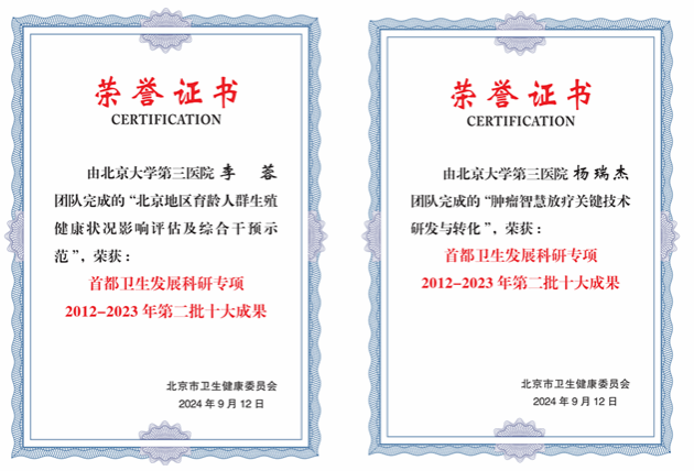 9月12日下午,服贸会公共卫生国际论坛发布了首都卫生发展科研专项2012-2023年第二批十大成果,北医三院副院长、生殖医学科李蓉团队的“北京地区育龄人群生殖健康状况影响评估及综合干预示范”项目和北医三院肿瘤放疗科杨瑞杰团队的“肿瘤智慧放疗关键技术研发与转化”项目入选。