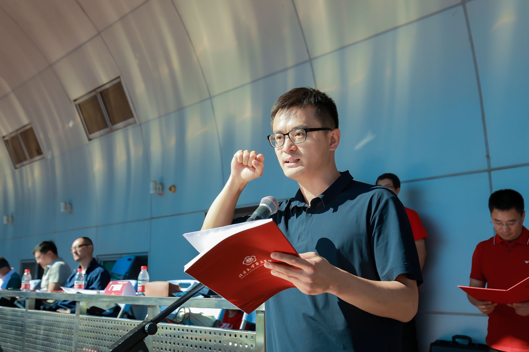 随后,检验科赵阳同志代表全体运动员宣誓,表示将在比赛中严格遵守比赛规则和赛场纪律,服从裁判,团结协作,顽强拼搏,公平竞争。