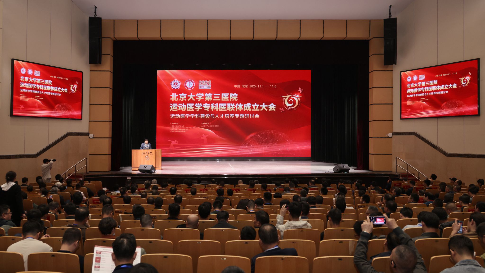 2024年11月1日,北京大学第三医院运动医学专科医联体成立大会在医学部会议中心举行。山西省医学会会长卫小春教授,南方医科大学第三附属医院原院长、运动医学研究所所长蔡道章教授,我院党委书记金昌晓、副院长李蓉,运动医学科主任、运动医学专科医联体理事长王健全,以及医联体34家常务理事单位、261家理事单位的专家代表,共500余人出席会议。成立大会由我院运动医学科副主任、机场院区副院长印钰主持。