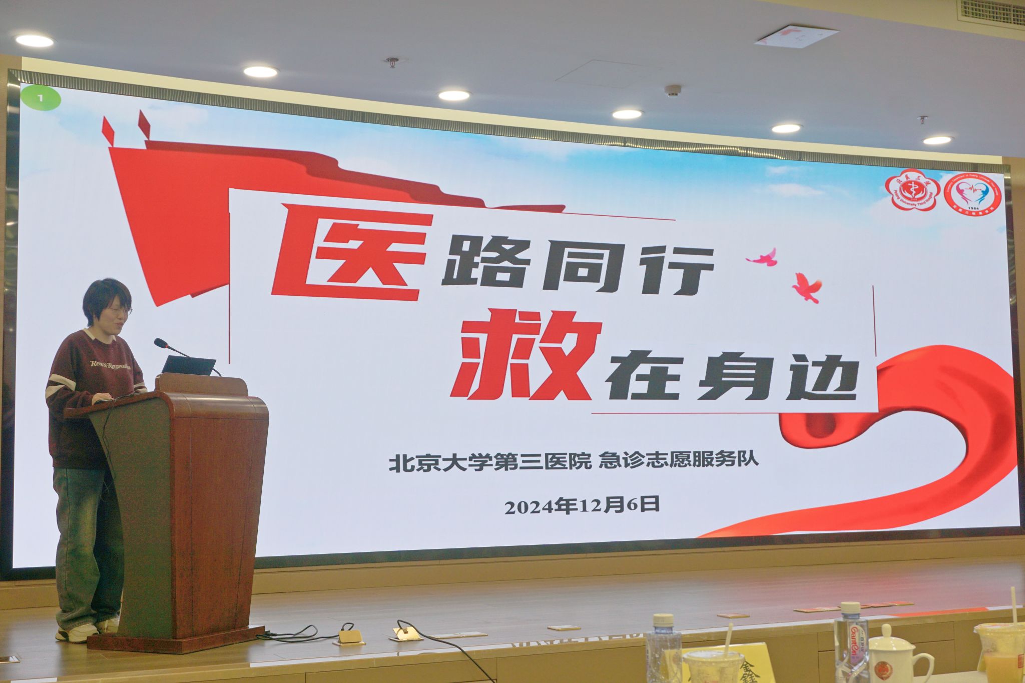 我院北京市级青年文明号号长、急诊科田慈向大家介绍了急诊志愿服务队成立以来所取得的成就和进展,鼓舞了更多青年人积极参与志愿服务的热情。