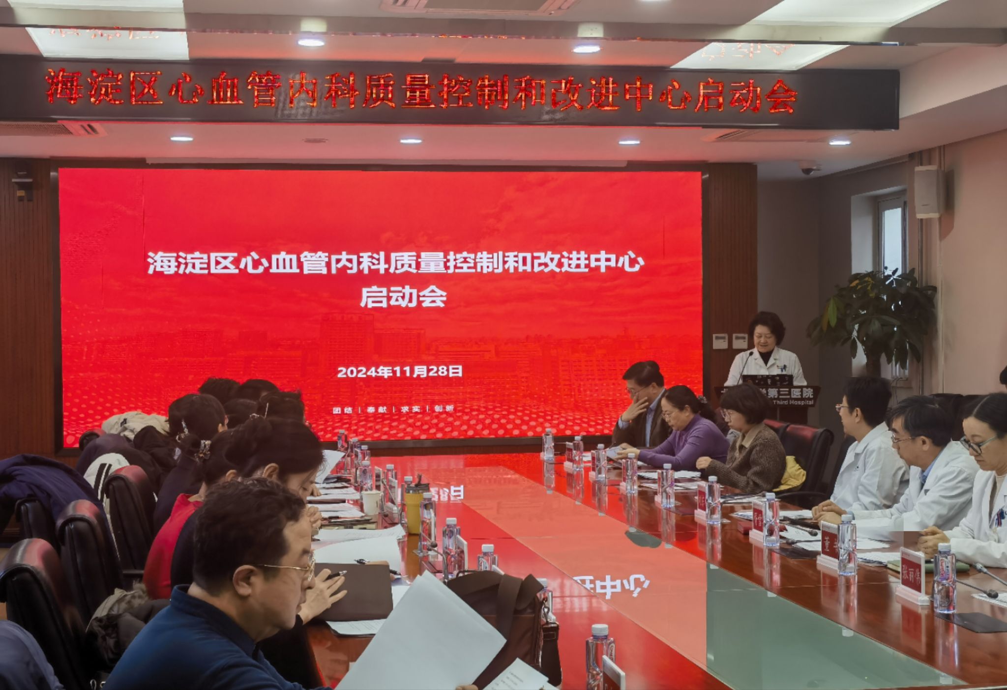 2024年11月28日下午,北京市海淀区心血管内科质量控制和改进中心启动会在北京大学第三医院举行。海淀区医院管理中心主任赵海、医疗质量管理科科长韩冰,北医三院党委副书记刘东明、医务处处长胥雪冬、医务处质量控制办公室主任董书,以及海淀区心血管内科质量控制和改进中心第一届委员会委员出席会议。我院心血管内科副主任汪宇鹏担任主持。