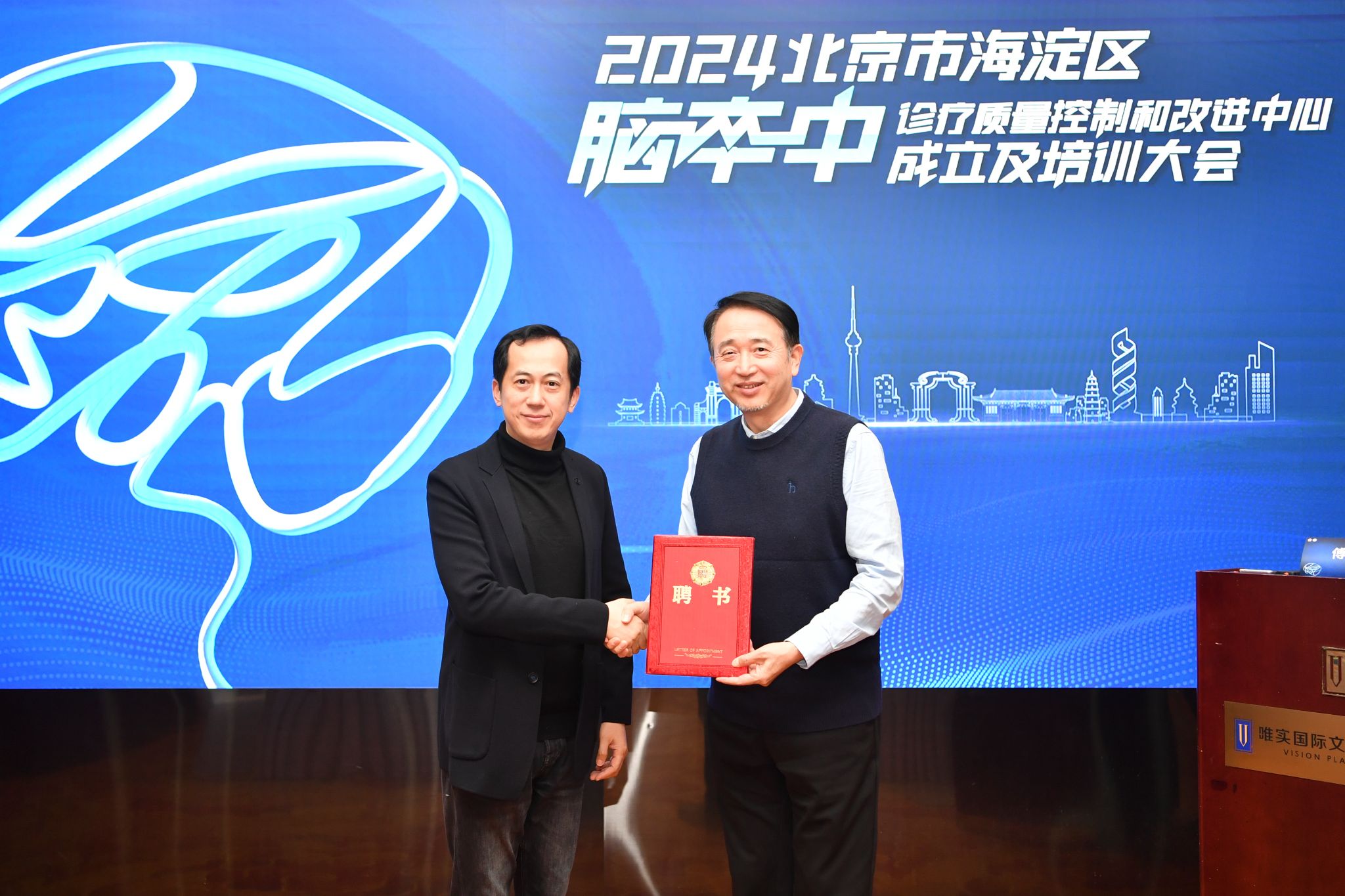 随后,副主任委员傅瑜宣读第一届海淀区脑卒中诊疗质量控制和改进中心委员名单。与会领导向质控中心主任委员、副主任委员和委员颁发了聘书。